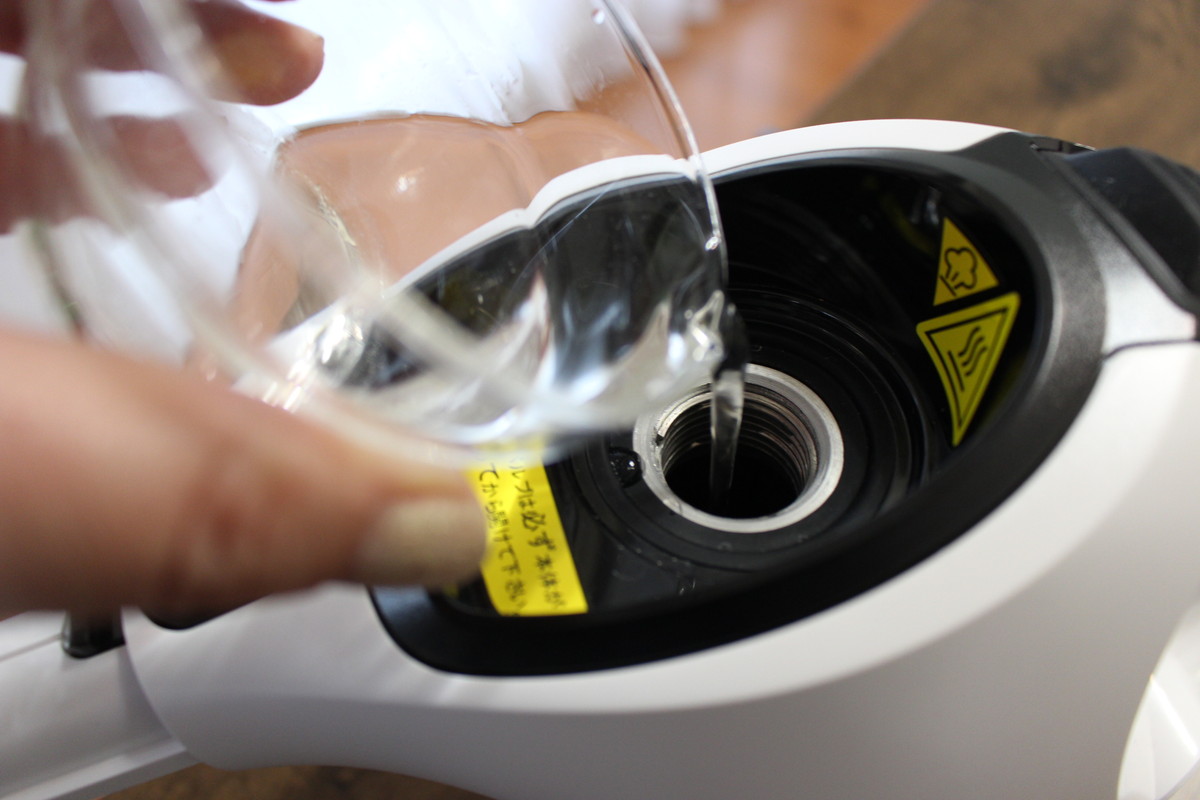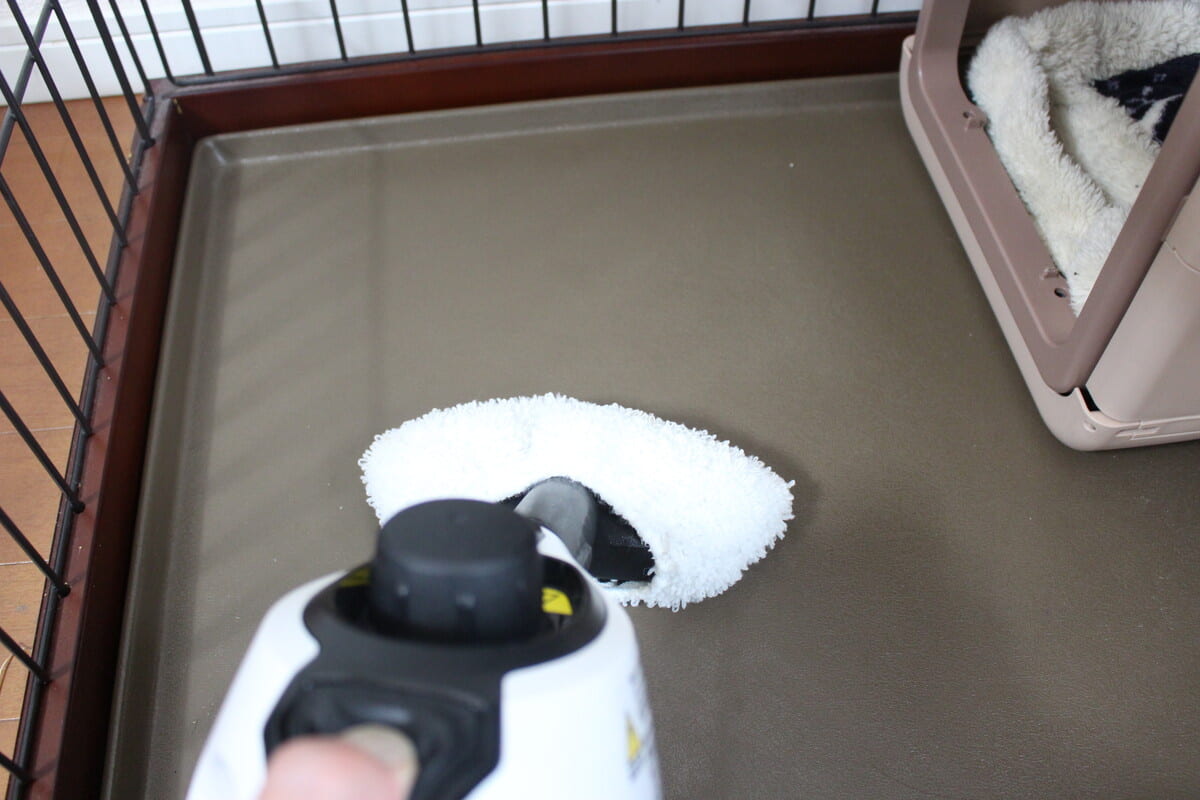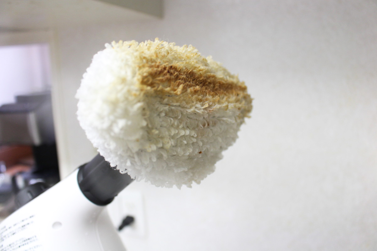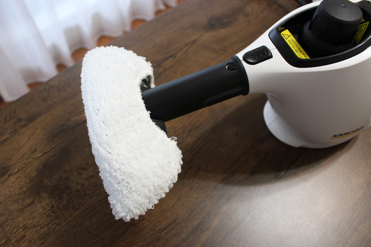 ちなみに、壁面をスチームクリーナーで掃除するときは、少し注意したいことがあります。使い続けるとマイクロファイバーカバーがたっぷりスチームを吸い、垂直に持って使うと、熱めのお湯がポタポタ垂れてくるのです。さすがに火傷するほどの熱さではありませんでしたが、ちょっと気をつけたほうがいいかもしれません。