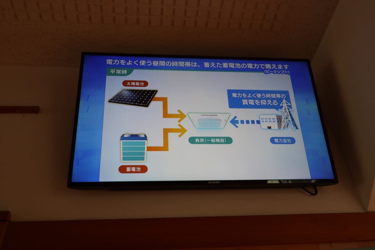 晴天時には太陽光発電した電気を病棟の照明に使いながらも、午前中に蓄電池が満充電になり、夜の運用に利用できるそうです。病院は24時間運用のため、昼間に充電した電気を夜間にも使用できるとエネルギーコストの削減効果が大きく、初期投資費用の回収期間も他の施設に比べて短くなるとのこと。なお、同院の総事業費は約6億6000万円で、うち4億5000万円弱が補助金によって賄われています。