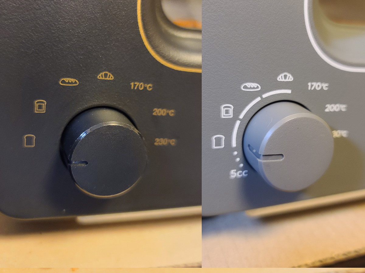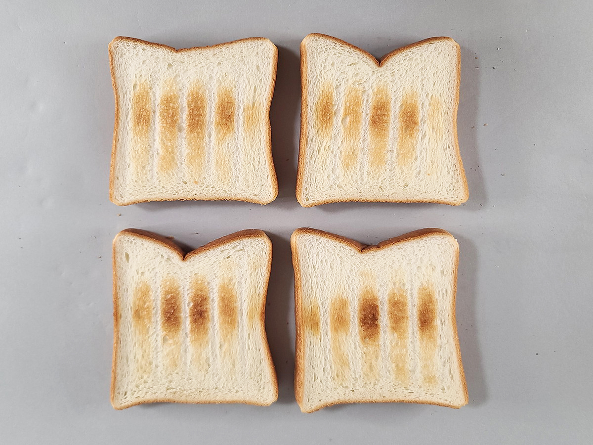 リニューアルに際して、各モードの加熱コントロールも改良しているといいます。そこで、今回は新旧モデルでパンの焼き比べもしてみました。一番気になるトーストモードは、従来より焼き色が薄くなった印象。また、旧モデルは裏面の焼き色が少し濃い目の印象だったのですが、新モデルでは裏面の焼き色が比較的均一になっている気がします。味と食感は新旧どちらも一般的なトースターより断然美味しく、大きな違いはそこまで感じませんでした。ただし、新モデルのほうが裏側が焦げすぎずに上手く焼けると思います。