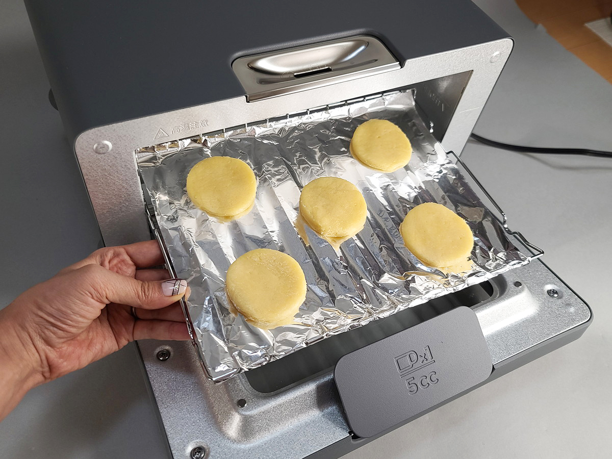 ところで、BALMUDA The Toasterでは水を使わない170/200/230℃のオーブン機能(クラシックモード)もありますが、こちらは従来モデルとほぼ変わりなし。試しに170℃モードでクッキーを焼いてみたところ、庫内奥側が強く焼けてしまいました。オーブン機能に関してはコンベクションオーブンには勝てません。ただし、グラタン等の「焼き色をつけるだけ」程度の調理なら問題なくこなせます。