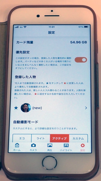 「PowerShot PICK」は12人までの顔を登録して、登録した人物を優先的に撮影することが可能。さらに撮影した画像を同社独自のアルゴリズムでセレクトして、おすすめのアルバムを作ってくれる。これにより膨大な画像データから、ベストの画像を簡単にチョイスできる。iOS版では、セレクトした画像を組み合わせたハイライト動画の作成にも対応している。画像データは本体のmicroSDカードに保存され、Bluetoothでスマホ専用アプリに転送できる。