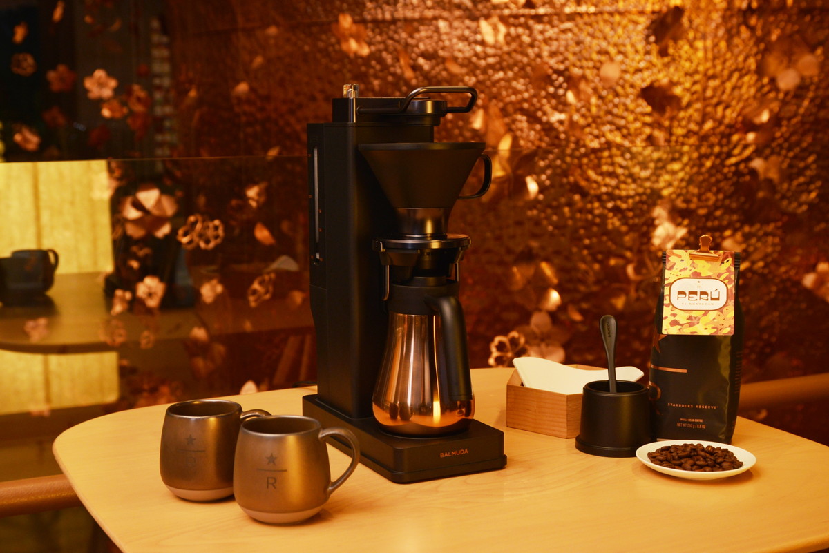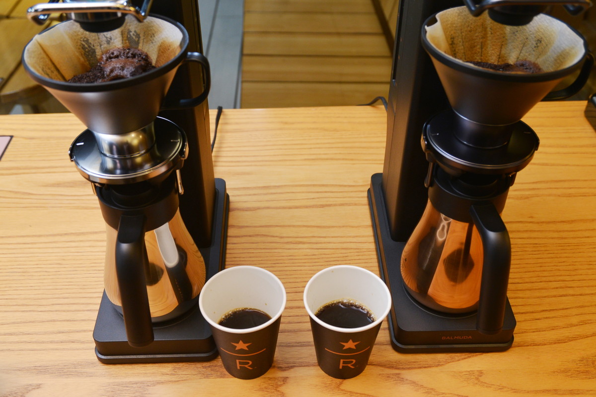 最初に商品情報を知った時は、「どんなデザインなんだろ?」ぐらいにしか思っていませんでしたが、常識破りのバルミューダをなめてはいけませんでした。なんでも、こちらはスターバックスで最上級のコーヒー豆のブランド「スターバックス リザーブ」をおいしく淹れるために最適化されているとのこと。「それはいっそう気になる!」ということで、体験会に参加。しかも、その場で特別に通常モデルとの味の違いをチェックさせてもらいました!