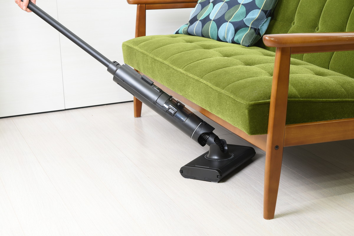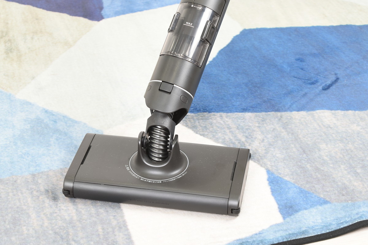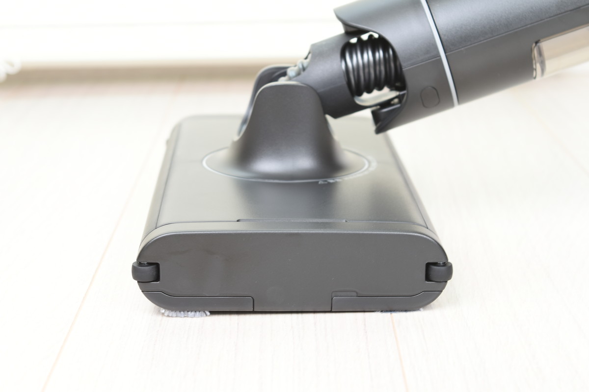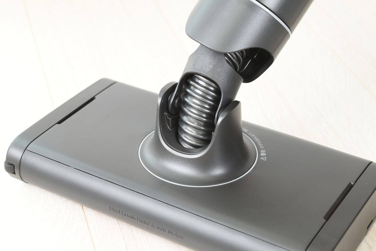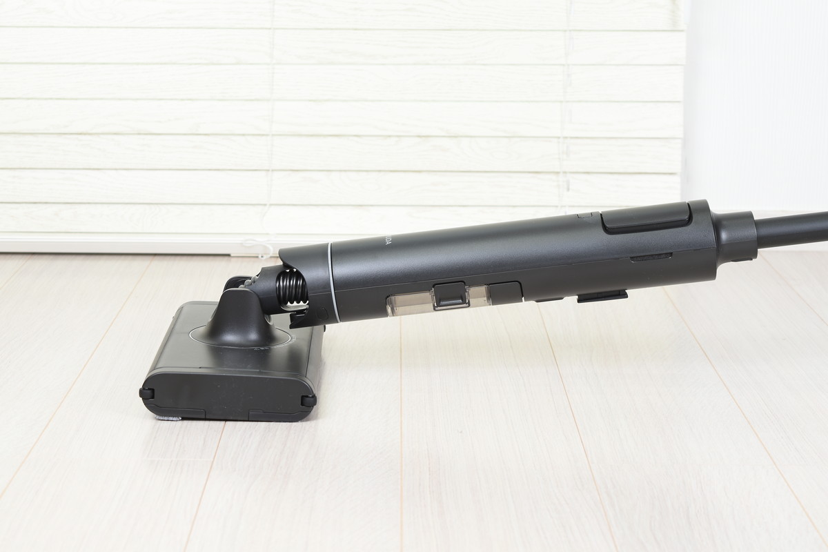 また、ヘッドがコンパクトになったことで、家具下の狭いスペースにもヘッドを差し込みやすくなったほか、従来モデルでは難しかった椅子の足まわりにもくるりとヘッドが回り込む。狙ったところにしっかりヘッドを当てられるストレスのない操作性は、痛快ささえ感じるほど。ヘッドをスイスイ滑らせながら、フロア全体をしっかりキレイにできた。
