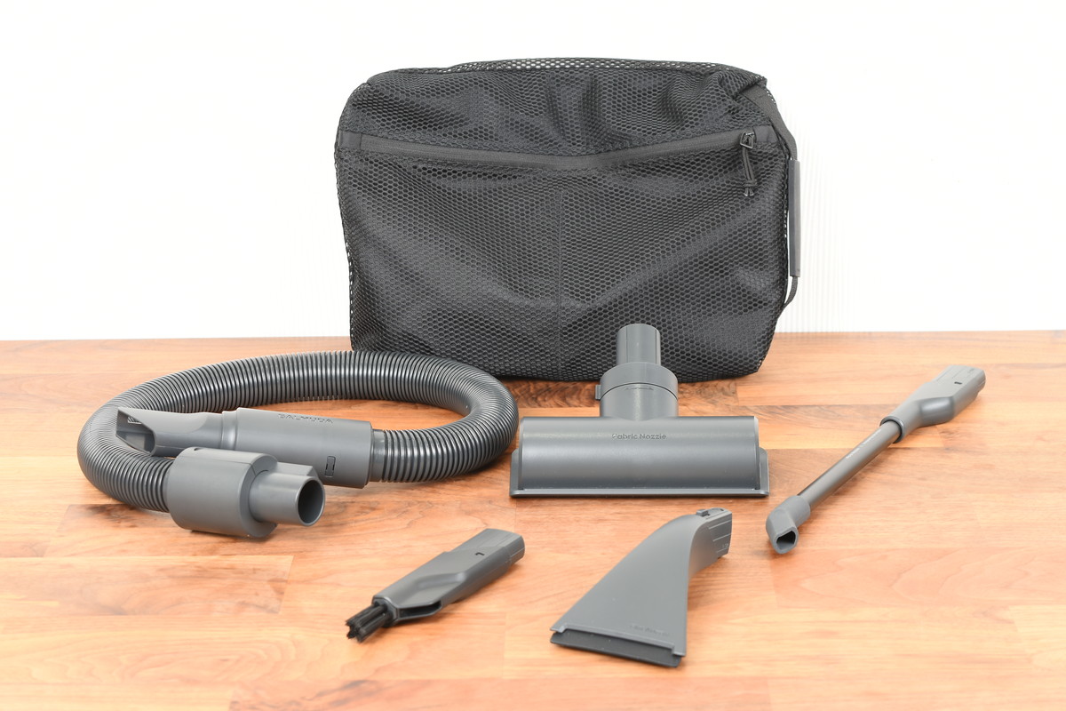 使い勝手の向上の面では、バッテリーが着脱式になったのもうれしいポイントだ。別売のバッテリーを追加購入すれば、連続運転時間が2倍になるので、広い家でも最後までバッテリーが持つだろう。なお、サイクロンによる遠心分離方式を採用しているため、ゴミ捨てはダストカップを外し、ゴミ箱にゴミを捨てるだけ。ダストカップの容量は約0.13Lから約0.1Lに減ったが、ボディのコンパクト化を考えれば許容範囲と言えるのではないだろうか。