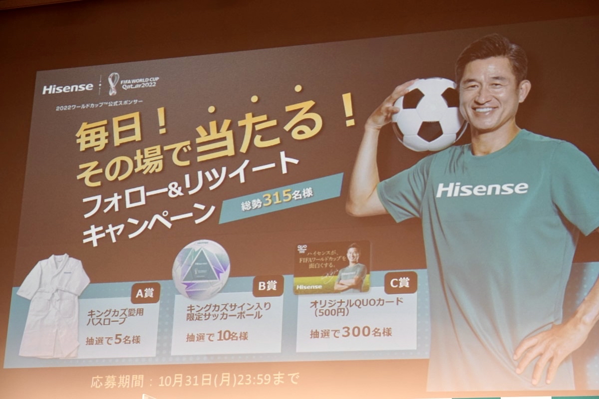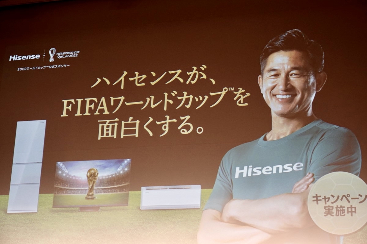 家電メーカーのハイセンスは、サッカー「FIFA ワールドカップ カタール2022」の公式スポンサーとして、アンバサダーにプロサッカー選手の三浦知良さんを起用したプロジェクトの詳細を発表しました。