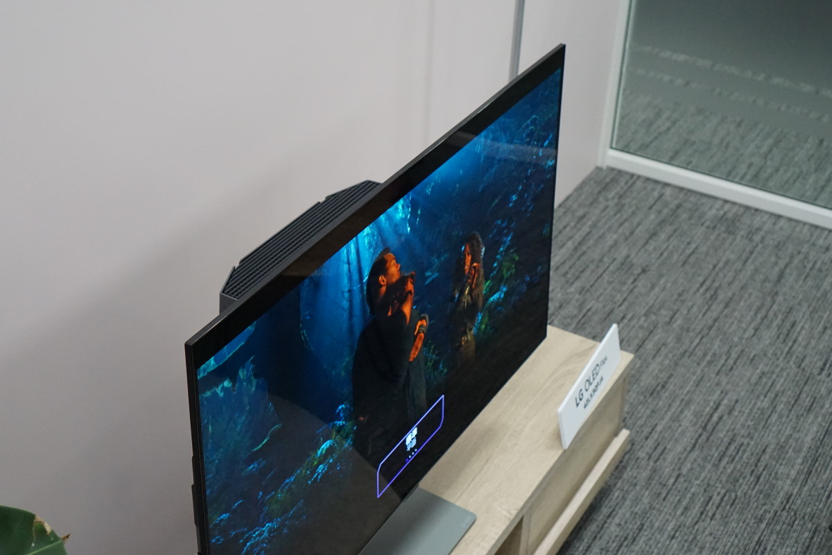同社は2013年に世界初の曲面型有機ELテレビを発売していましたが、曲面型は没入感が得られやすい、目から画面までの距離が画面端まで均等になるので目が疲れにくい、といったメリットがある一方、正面からでないと画面が見づらい、リビングに置いて家族で見るとには不向きといった弱点があり、今ではフラットな画面の水平型が主流となっています。