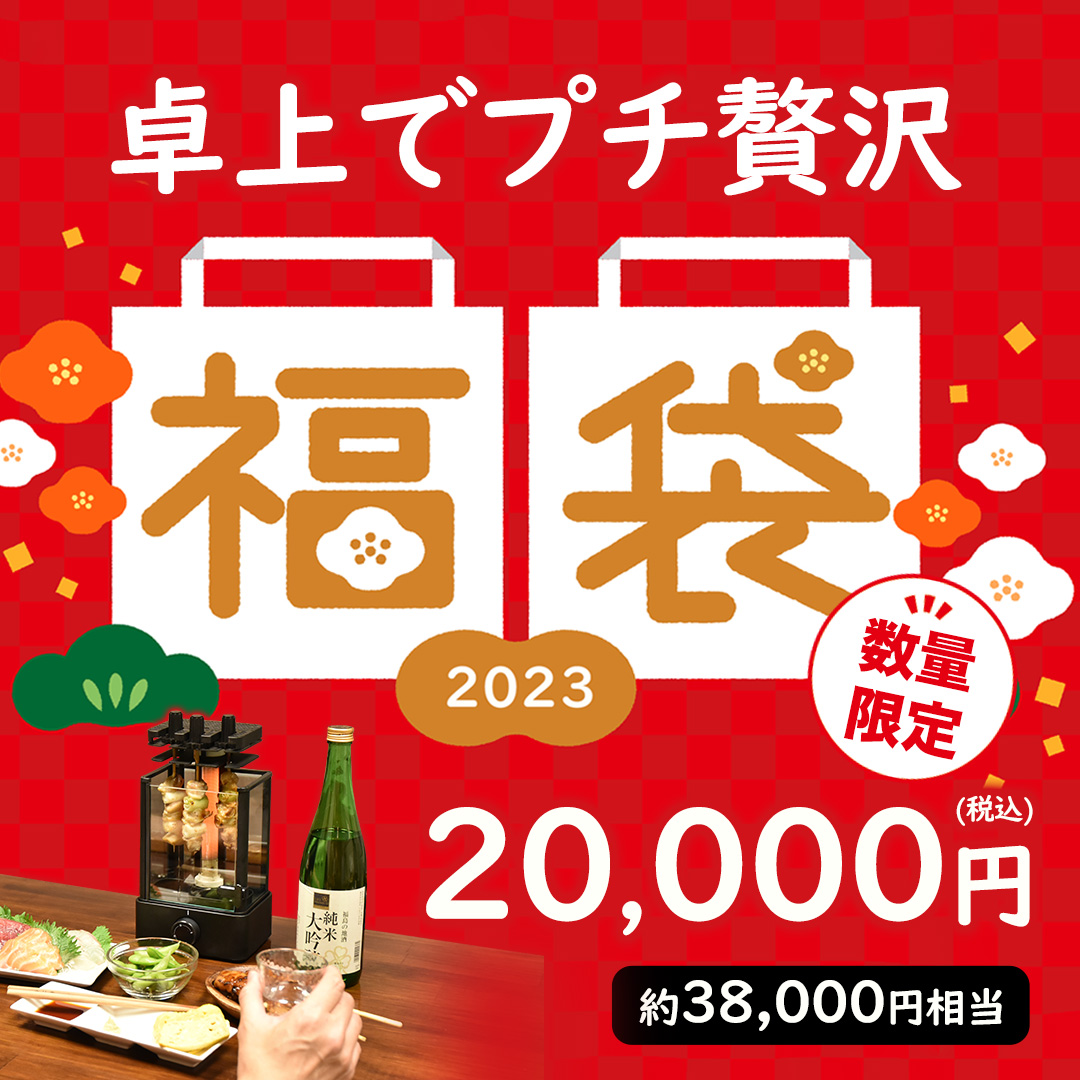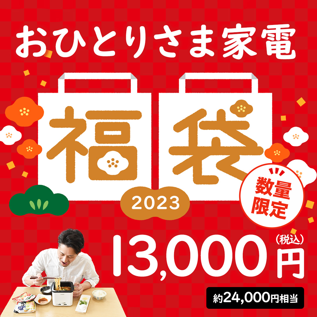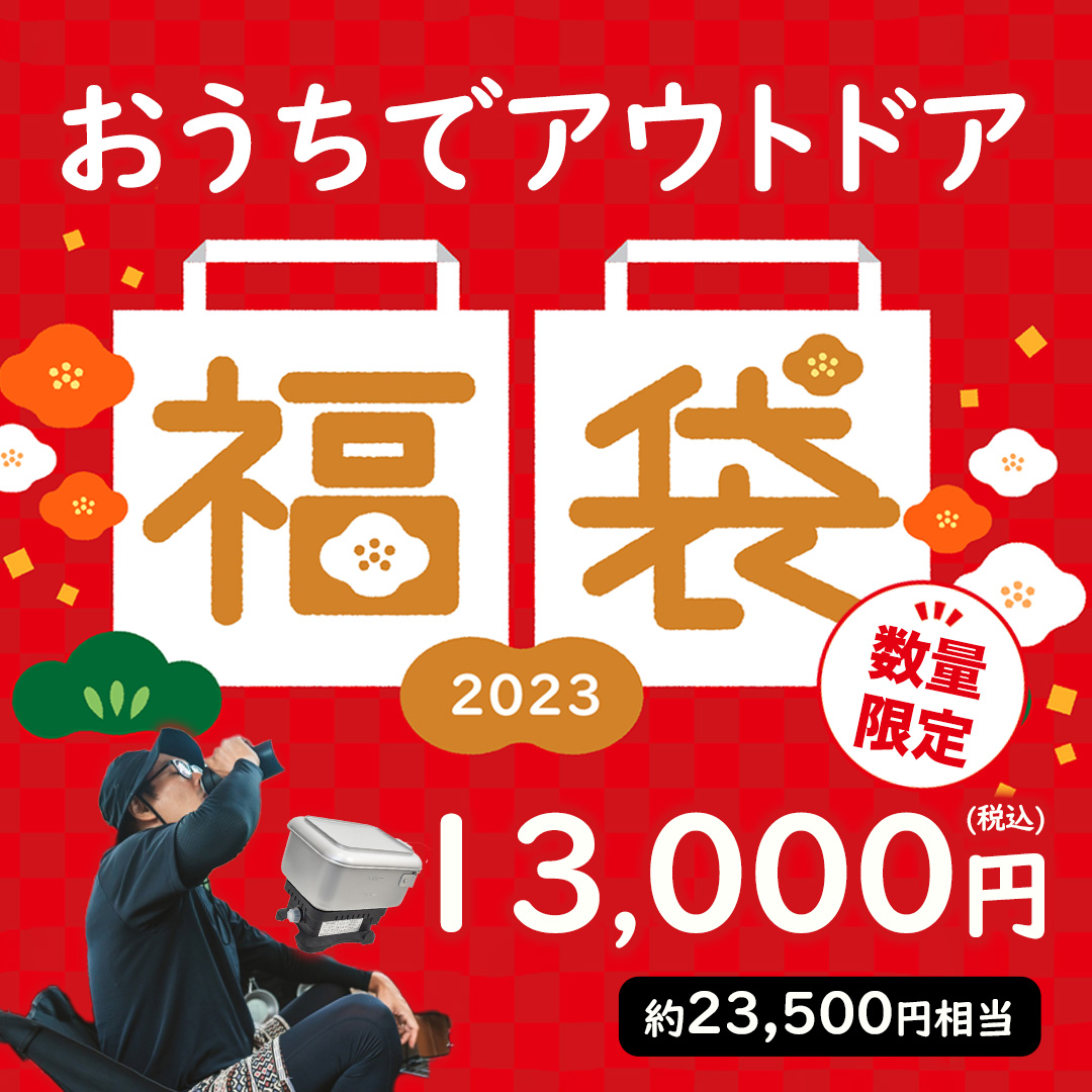 用意している福袋は、「7,000円福袋<鬱袋「Amore(アモーレ)」>」「7,000円福袋<鬱袋「Bravo(ブラボー)」>」「10,000円福袋<心も体もほっこりあったか福袋2023>」「13,000円福袋<おひとりさま家電福袋2023>」「13,000円福袋<おうちでアウトドア気分福袋2023>」「20,000円福袋<卓上でプチ贅沢を楽しむ福袋2023>」の6種類で、詰め合わせアイテムの点数は4点です。