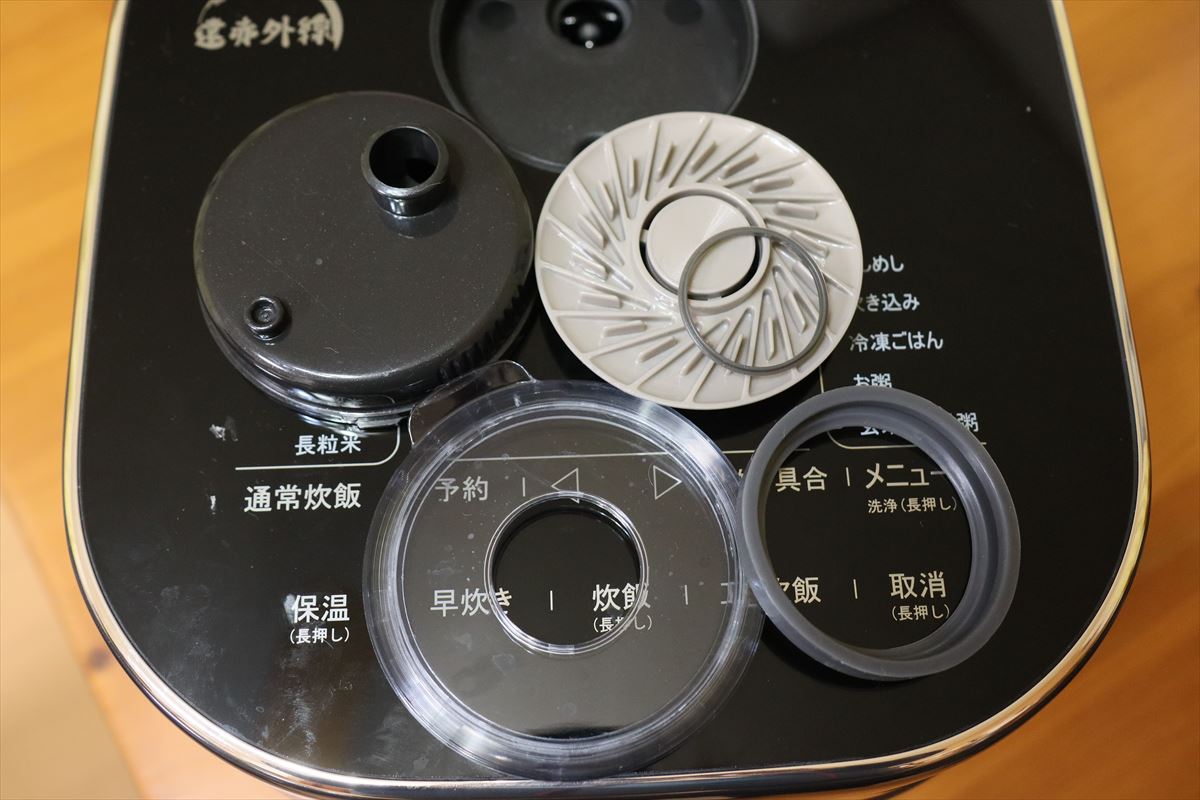 なお、お手入れは内釜、内ふたに加えて、蒸気口の水洗いが必要で、蒸気口が3分割となるため、若干の手間がかかります。また、内釜の底に角度ついており、接地面積が小さいので米を研ぐ時にグラグラするため、片手でしっかりとホールドする必要がありますが、底が浅いことで米が研ぎやすく、洗いやすいというメリットがありました。