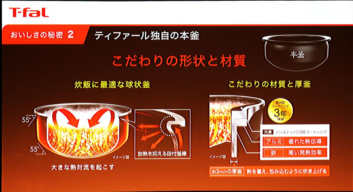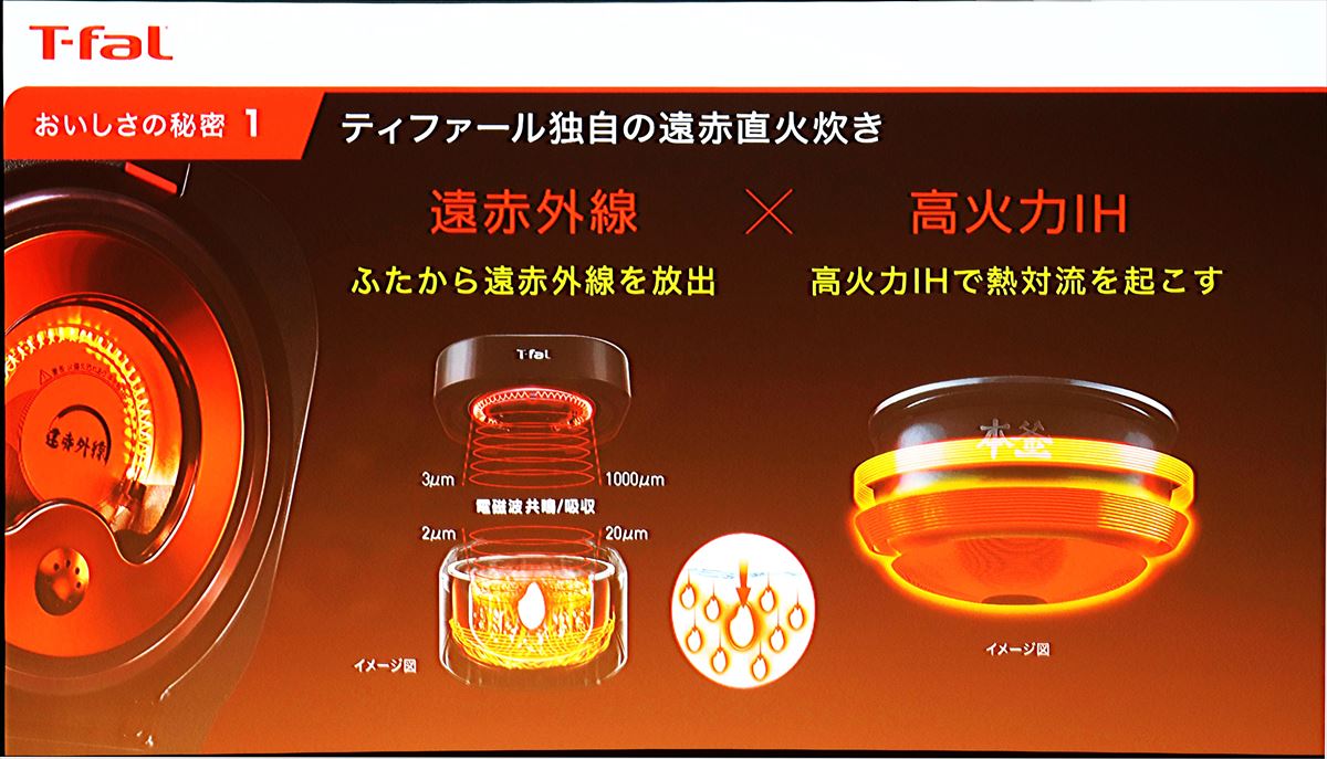 グループセブジャパンのブランド「ティファール」といえば、取っ手のとれるフライパンなどキッチン用品メーカーとして有名。日本で電気ケトルブームを仕掛けたほか、いま流行りの電気圧力鍋も他社に先駆けて発売するなど、キッチン家電でも国内で数多くの実績を残しています。そのティファールが国内初の炊飯器「ザ・ライス 遠赤外線IH炊飯器5.5合」(実売価格価格4万6310円)を発売しました。