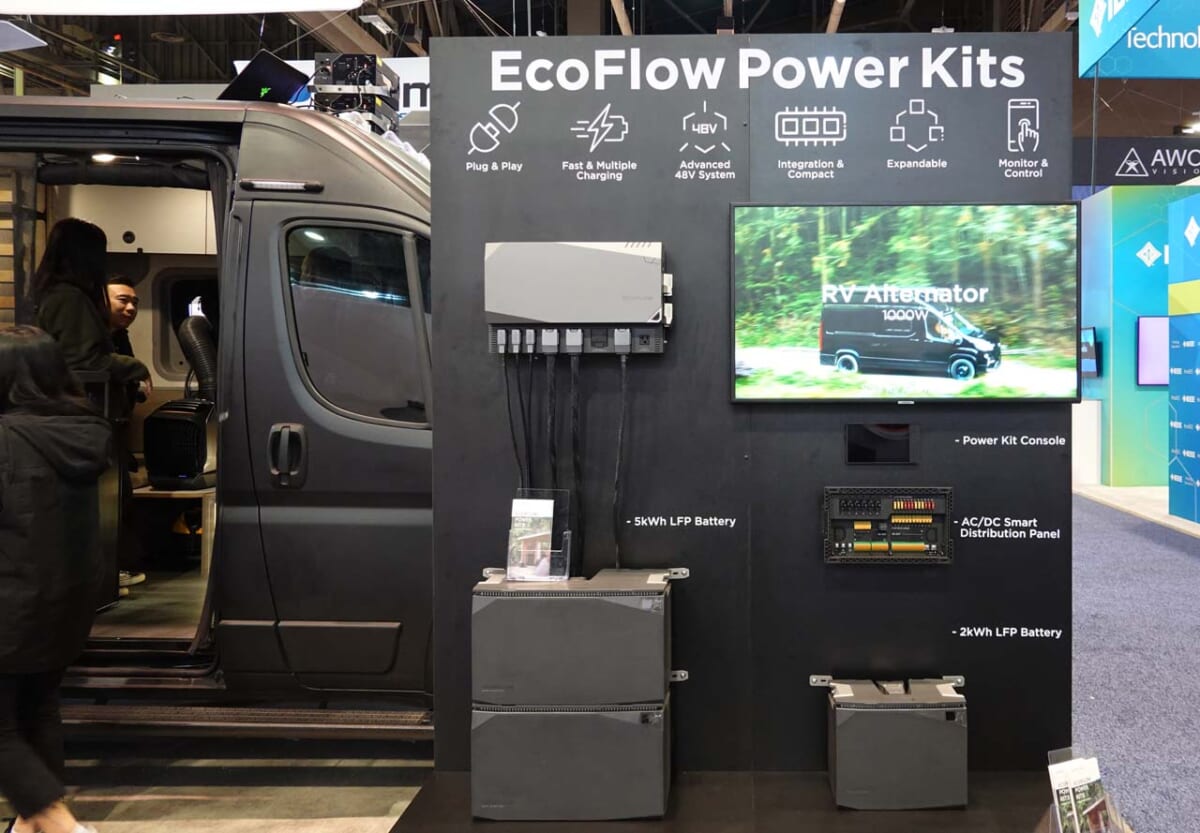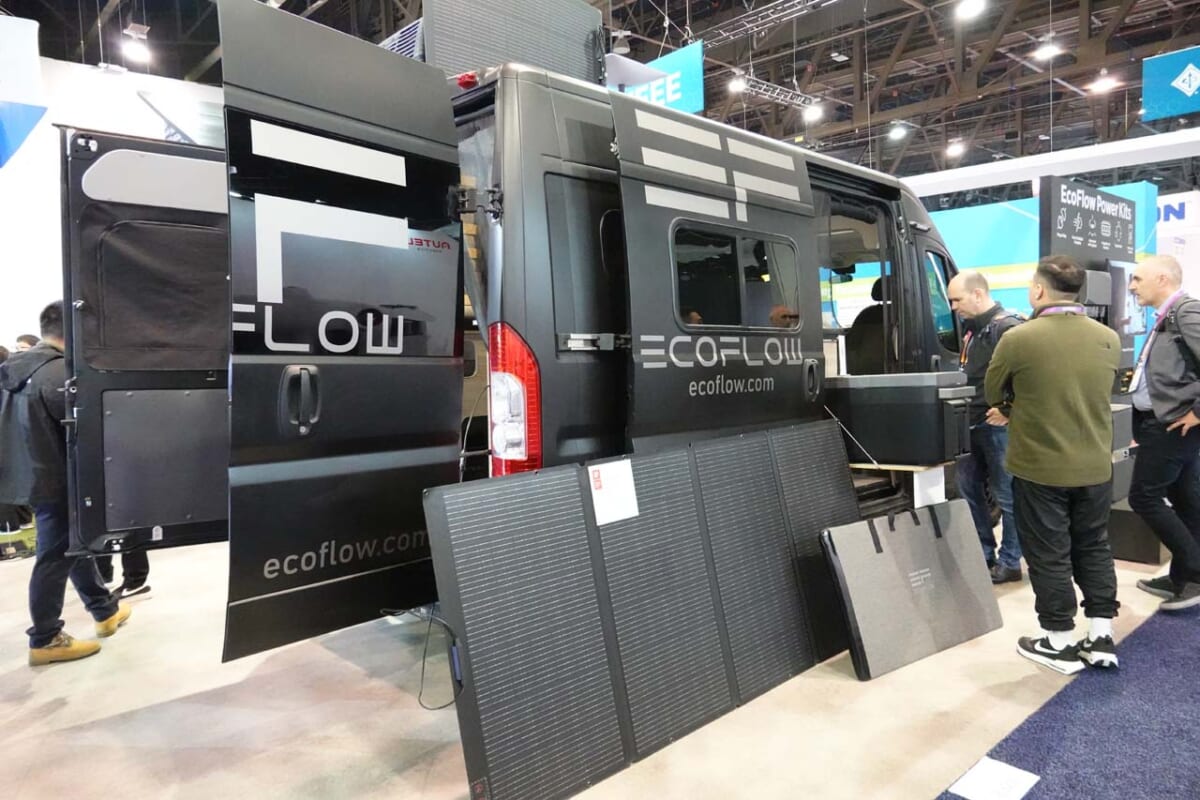 エコフローがブースを構えた会場は、ラスベガスコンベンションセンター(LVCC)のセンターホール。周囲はパナソニックやニコン、サムスン、ハイセンスなどが並ぶ、いわばCESの中心街的な場所。同社はここにソーラーパネルを使った「EcoFlow Power Kits」で発電するシステムを披露し、そこにはキャンピングカーを持ち込んで具体的な活用法を披露したのです。