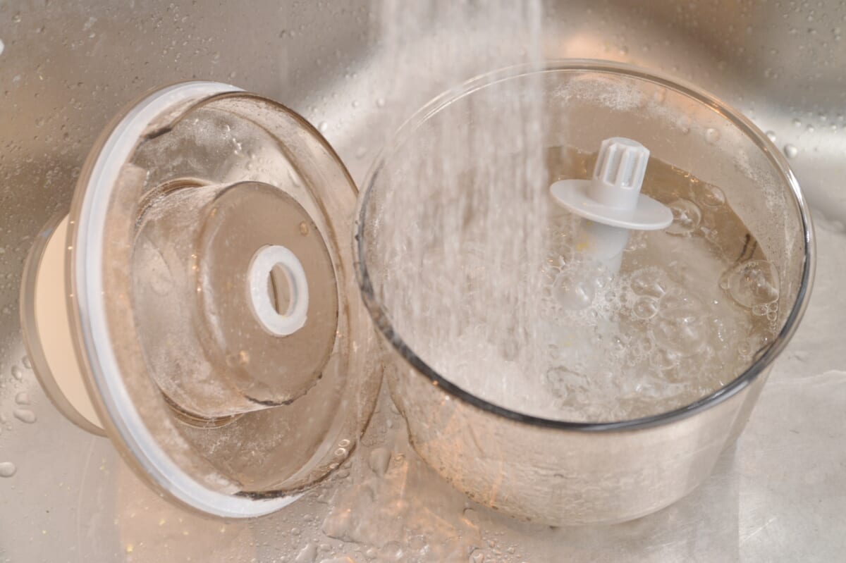 まずは、本製品のパーツを見ていきましょう。ボウルは一般的なクリアボウルとステンレスボウルの2種類が付属。ステンレスボウルは肉や魚や油類など、ニオイ移りや色移りが気になる素材にオススメです。