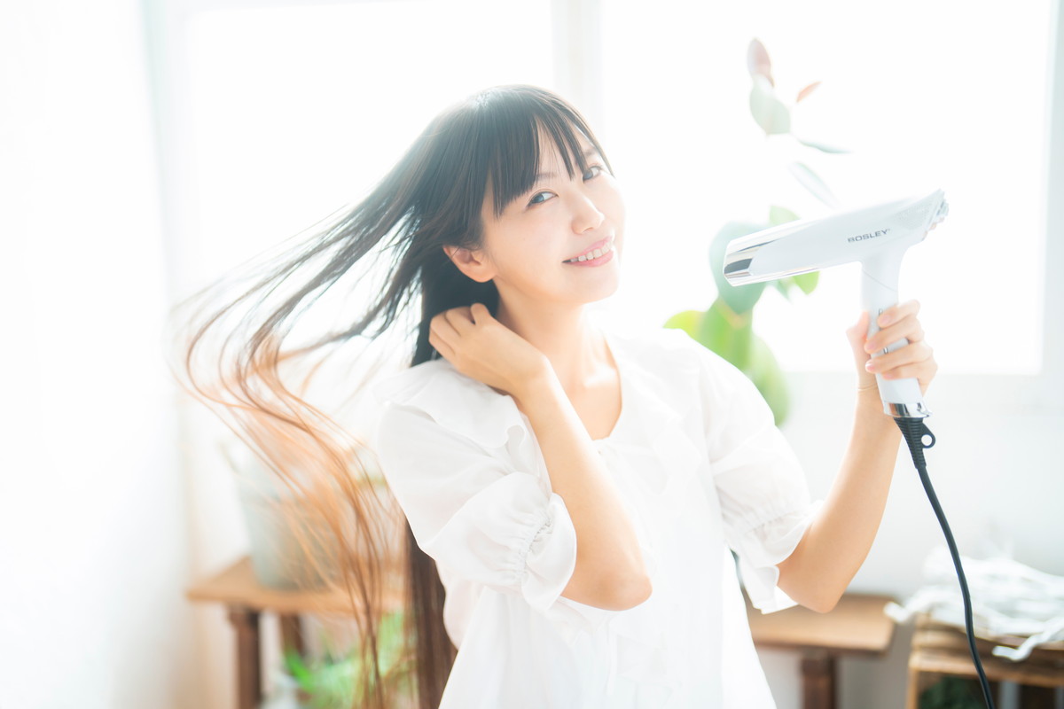 小岩井 これまで私が使ってきたドライヤーは、風量が弱いせいなのか、風が広がる感じがして。顔周りや肩まで熱風が当たってしまって、ちょっと不快だな……と思うことが多かったんです。その点、この「BOSLEY/JETEX/」は、とにかく風量が強い!