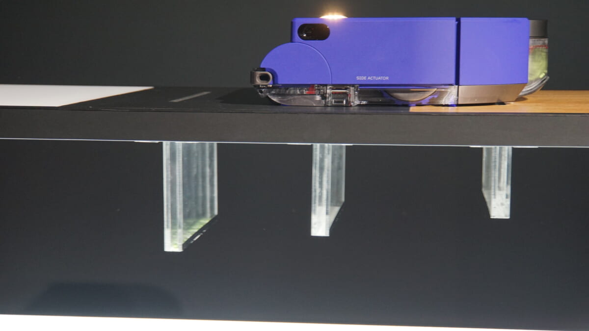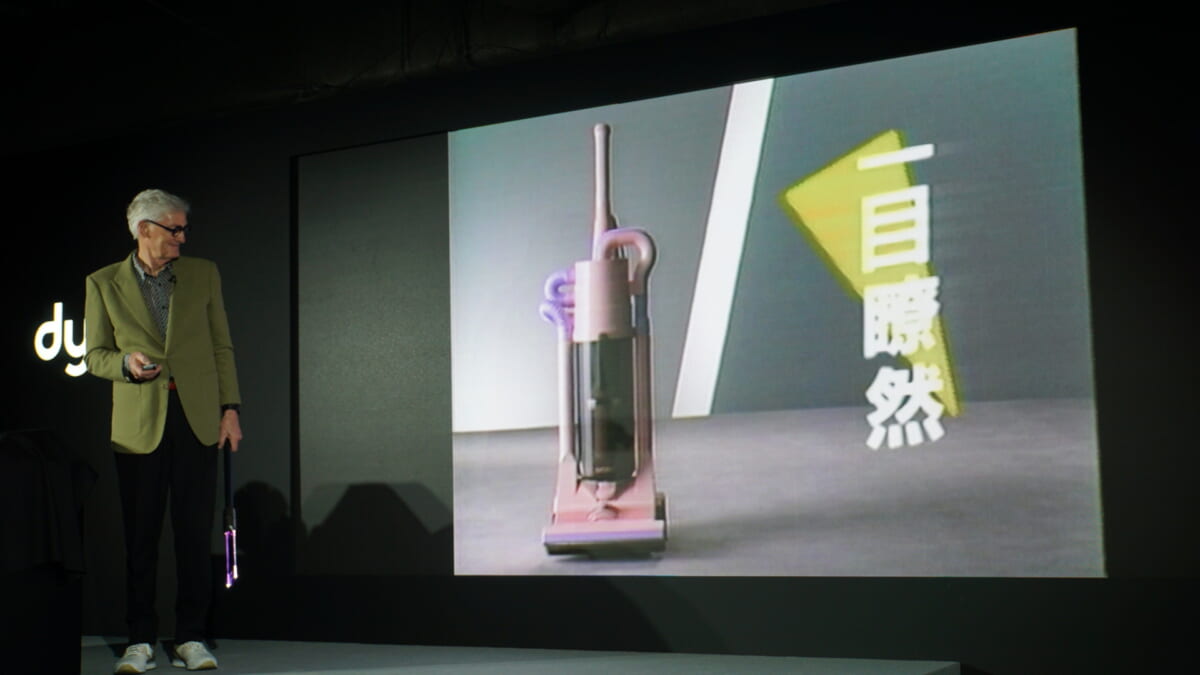 「壁を検知するとエッジノズルが自動的に出てきて、壁の隅までしっかり集じんします。まさに本当のインテリジェントな掃除機です」とジェームズ・ダイソン氏は自信を見せていました。