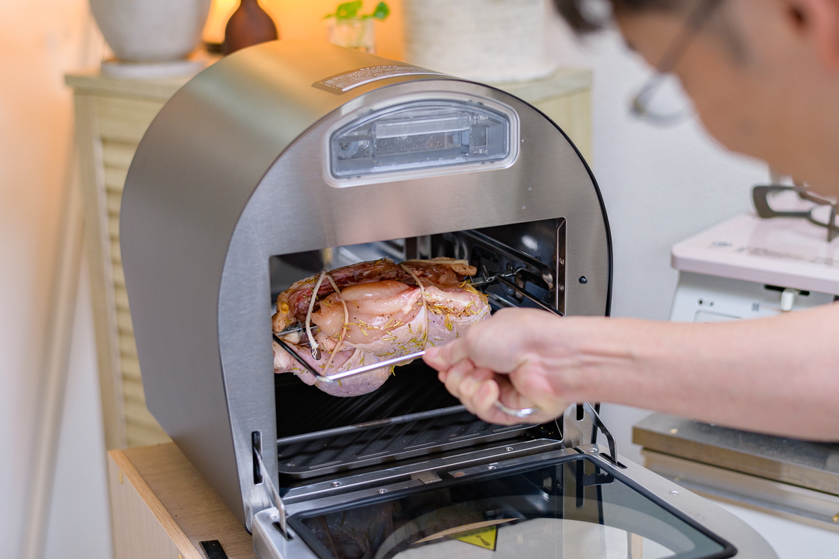 このロティーサリーチキンの調理に使ったのは、EPEIOS(エペイオス)の「FoElem(フォーエレム) スマートノンフライオーブン Chef(シェフ)」です。私が本機を使い、いかにしてロティサリーチキンを作ったか。以下で詳しくレポートしていきましょう。