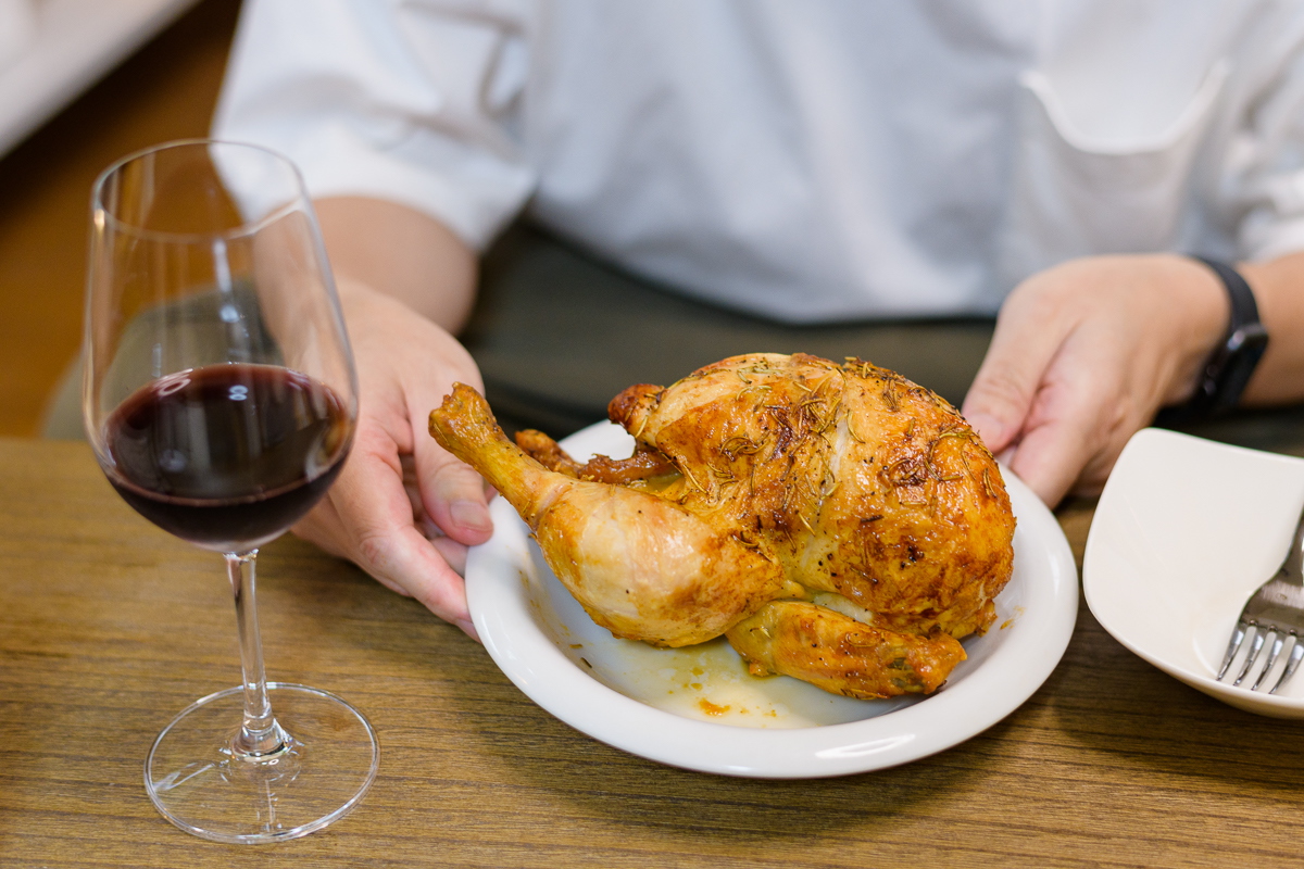 しかも、こんがりきつね色に焼かれた皮目はパリッとしていて香ばしく、身はしっとり。それでいて中までしっかり火が通っている。赤ワインとの相性も抜群です!