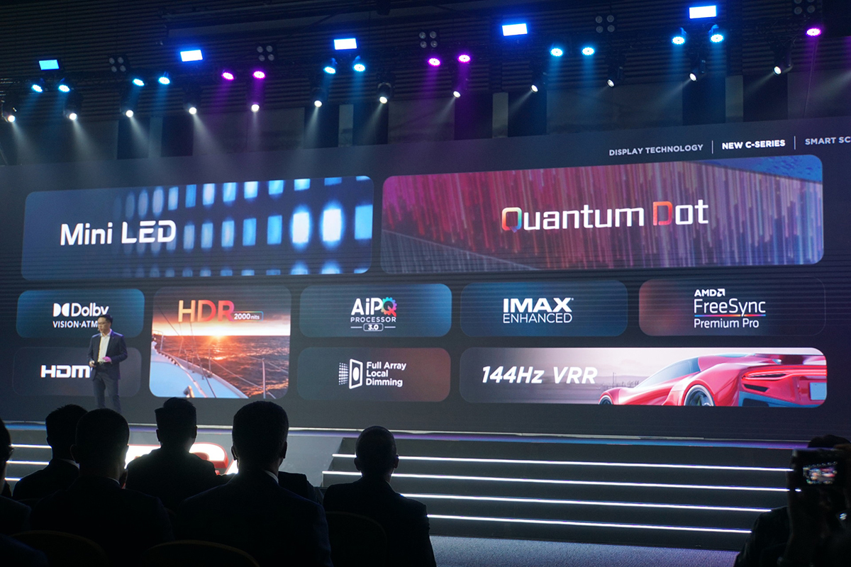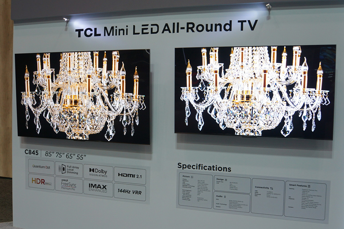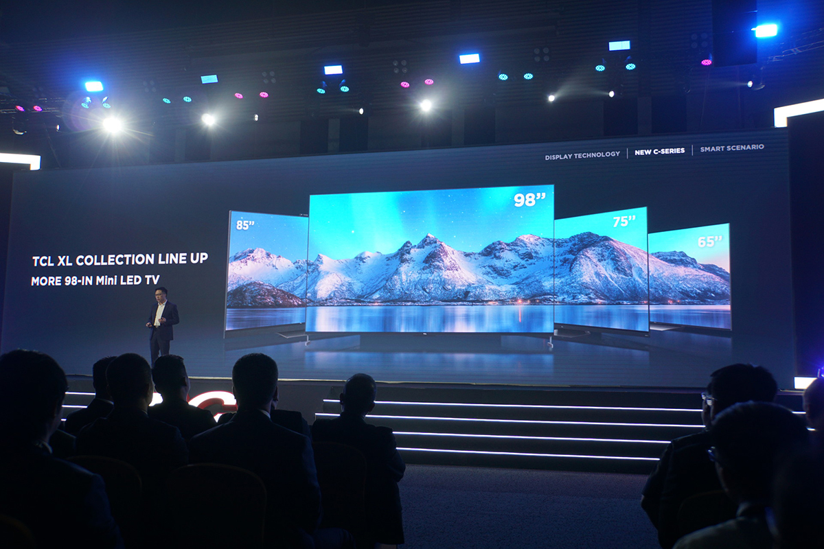 TCLは、小型化したLEDバックライトを部分制御することでコントラストをアップした「mini LED」と、色再現性を向上する「QD(量子ドット)」技術と、液晶パネルを組み合わせたQLEDテレビを展開。発表会ではその最新ラインアップである「TCL Cシリーズ」とプレミアムラインの「TCL XLコレクション」が発表されました。
