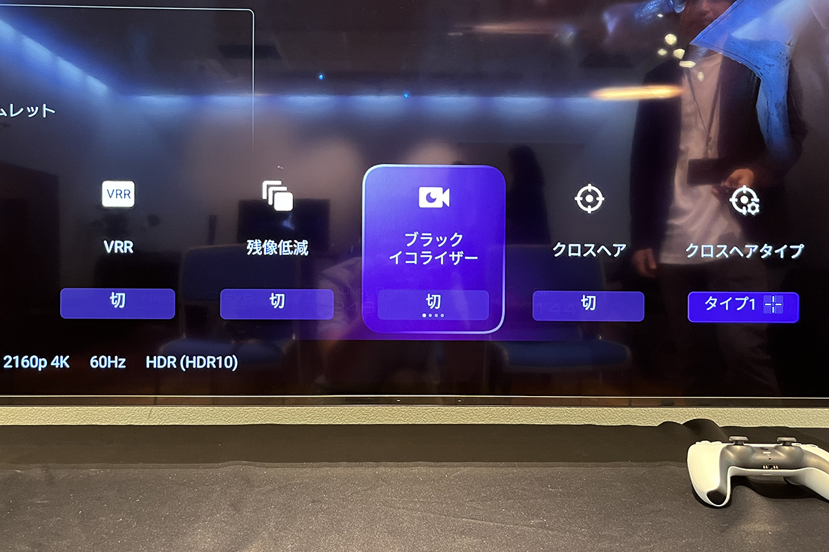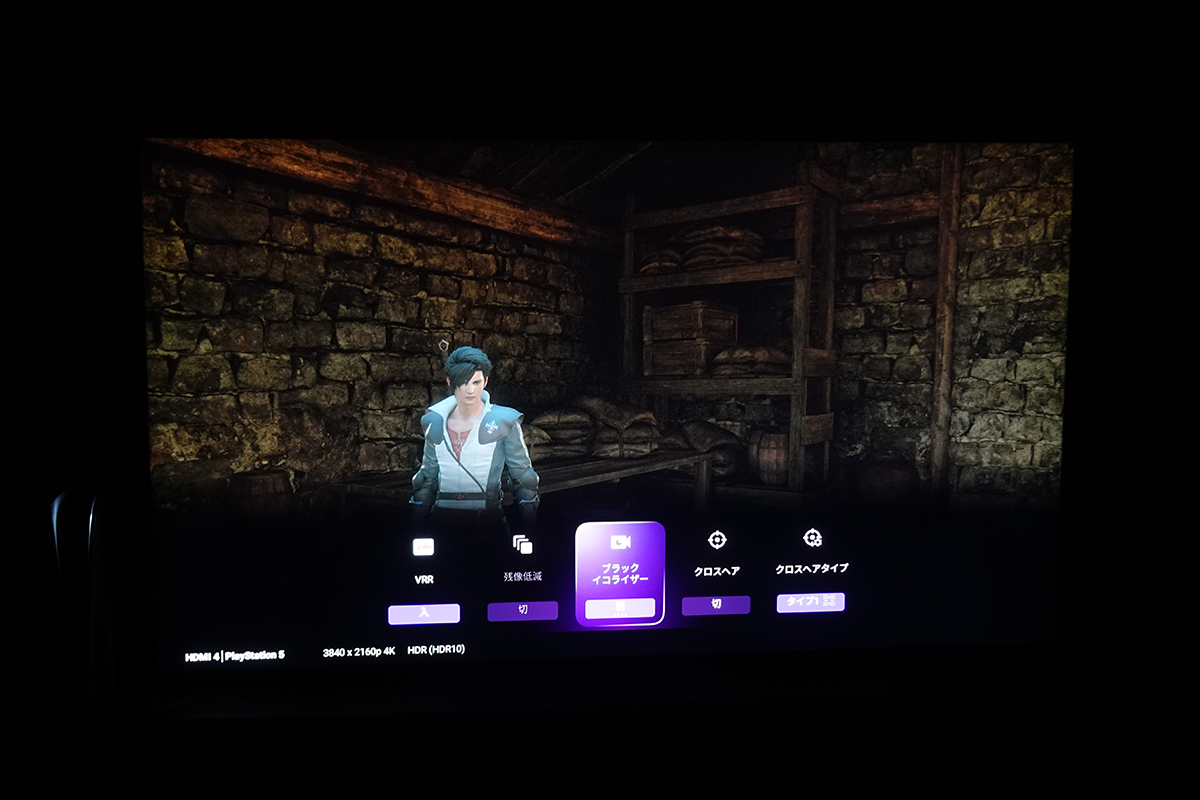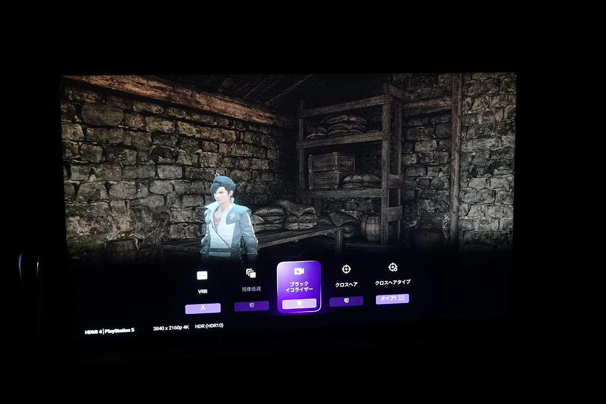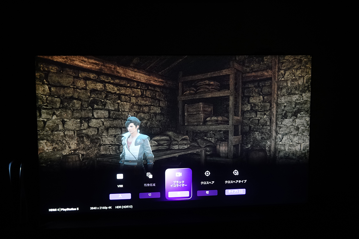 先に述べたように、液晶テレビのX95Lはそもそも画面が明るく、体験会中、ゲーム画面で暗くて見えにくいシーンはありません。それでもブラックイコライザーをオンにすると、画面の明るさが持ち上がることがはっきりとわかりました。