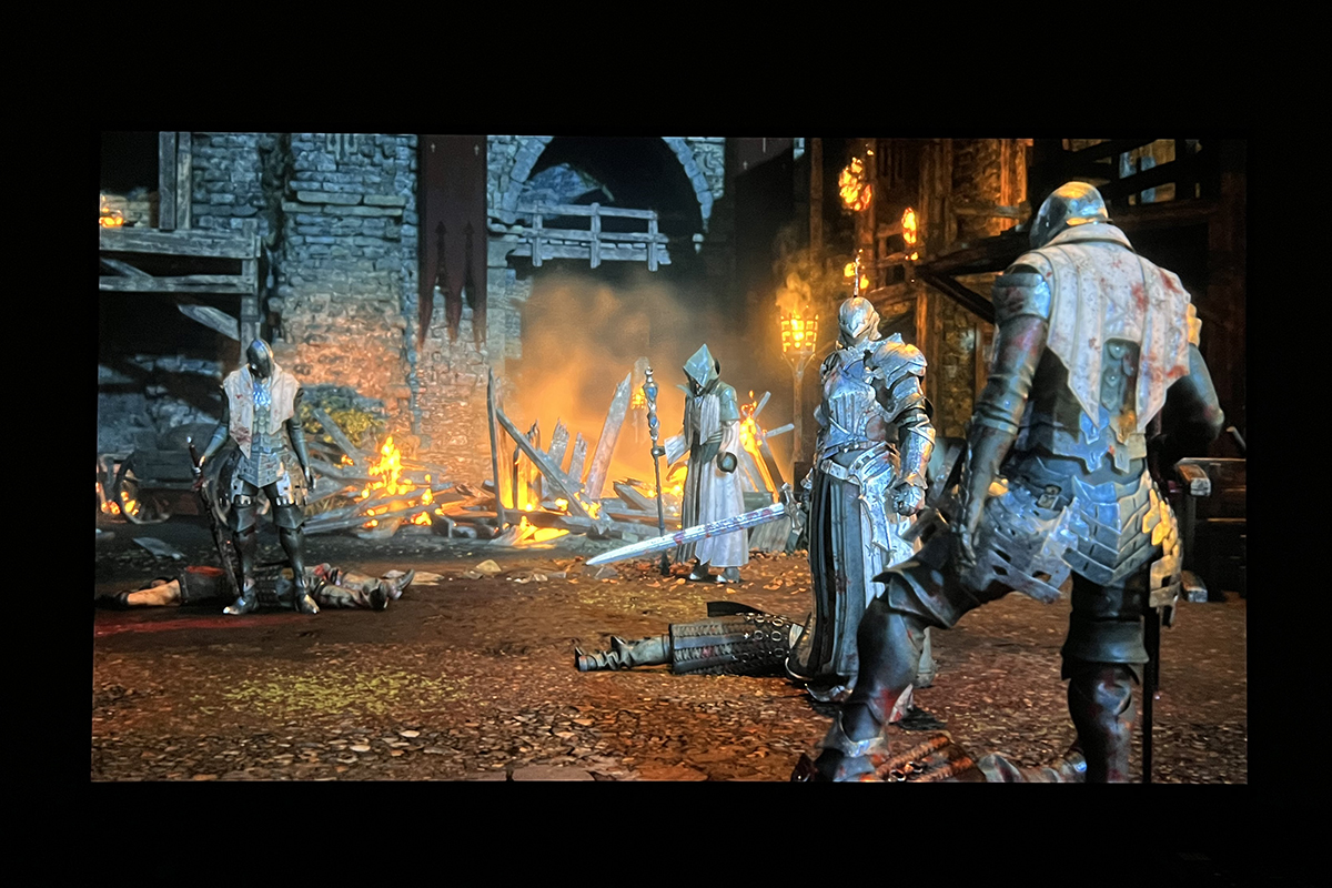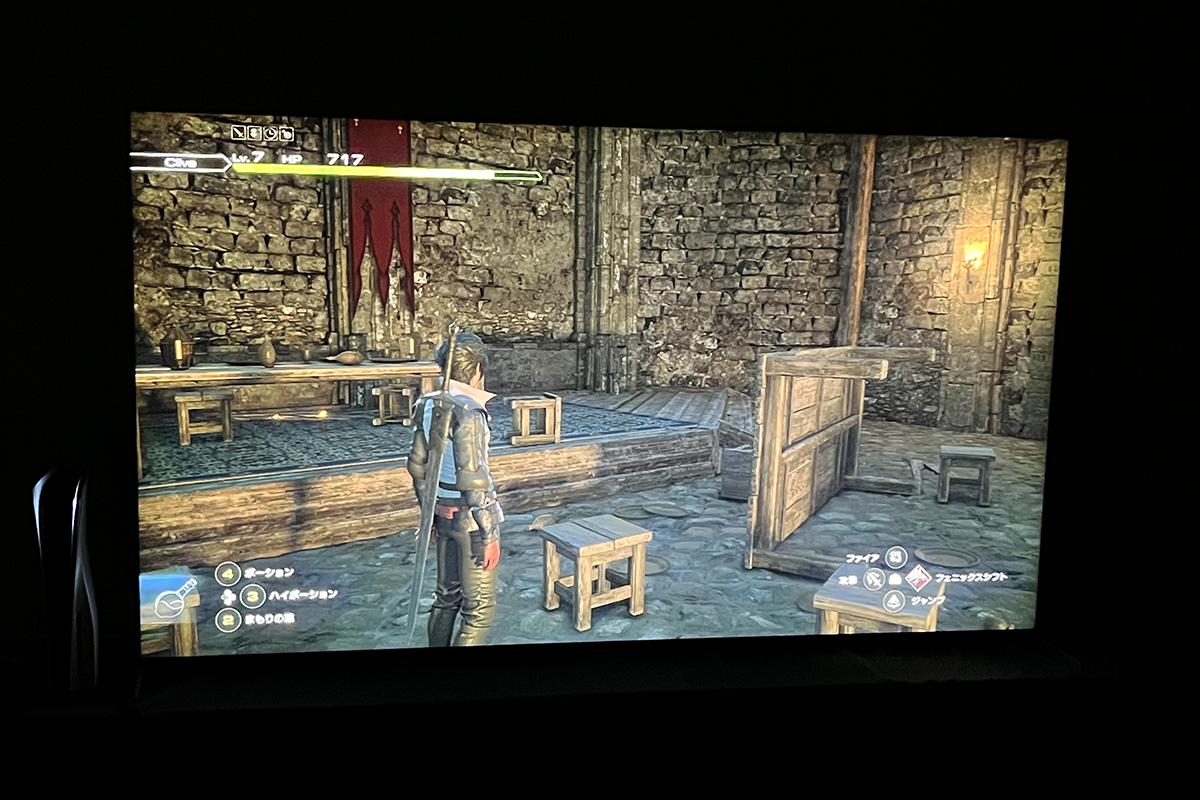 また、新製品のブラビアの多くのモデルがFF16公認画質ということで、ゲームをするときの画質は圧巻。古いレンガや木の経年劣化した感じ、鎧の鈍い金属の質感、人物の髪1本1本にわたる微細な表現などが余すことなく描かれていると感じた。