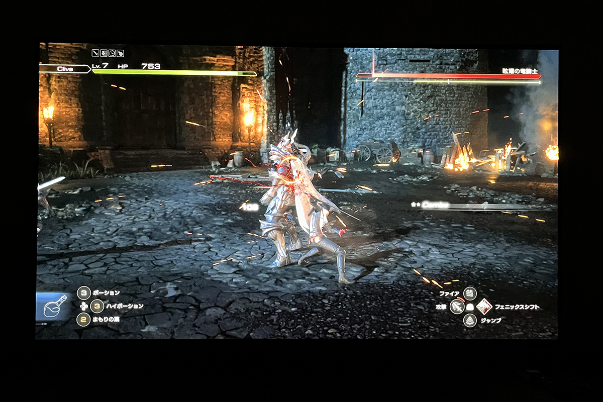 一方のA80Lは、夜の漆黒の闇と、そこで揺らめく炎や魔法のまばゆい輝きを体感できます。その両方を同時に表現し切るパフォーマンスを備えているので、特にストーリーを展開するムービーシーンは、まさに息をのむ映像美として画面に没入できます。