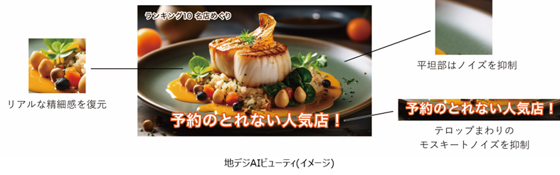 地上デジタル放送においても画面のエリアごとにあらわれるさまざまなノイズを低減し、高精細な映像を再現。文字まわりのノイズや動きのある映像で発生する動きボケを抑えて、クリアな映像を描き出します。
