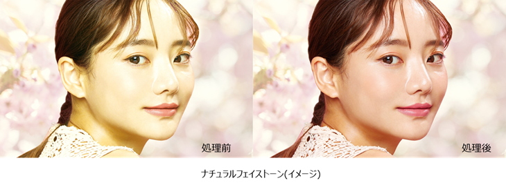 人肌の立体感や質感を向上させるとともに、黒ずみや白飛びなどを抑制し、自然な人肌を再現。さらに、撮影環境などの影響によりカラーシフトした人肌を自然で美しい色合いに再現します。