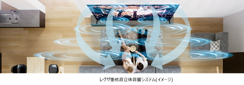 オーディオ面では「レグザ重低音立体音響システムZ」を搭載しています。実用最大出力合計値60Wのマルチアンプが2wayメインスピーカーやトップツィーターなどを駆動し、迫力のサウンドを奏でます。