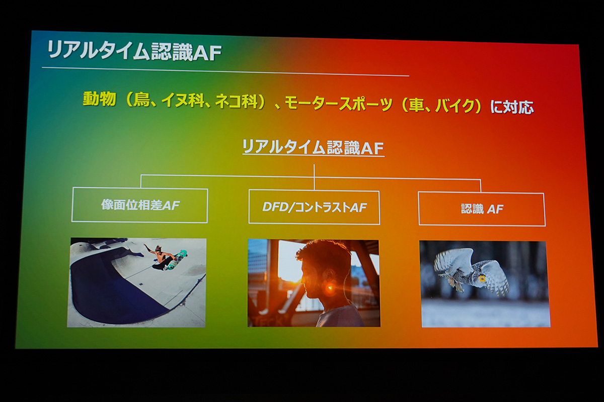 また、像面位相差AFを搭載し、動物や車・バイクなどに対応するリアルタイム認識AFを可能にしています。さらに動画においては、歩き撮り時の大きなブレと周辺歪みを抑制する手ブレ補正テクノロジー「アクティブ I.S.」も採用しています。
