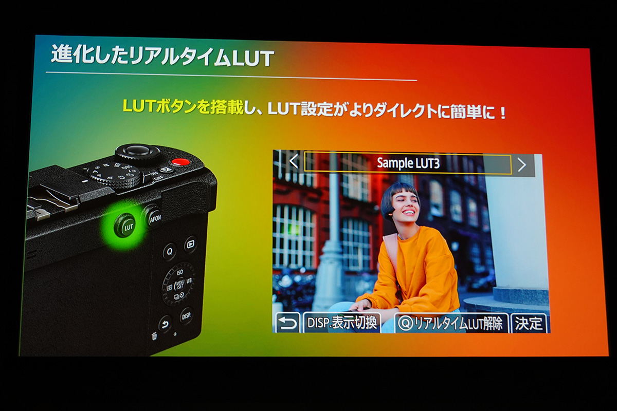 本体には、写真・動画に自分好みの絵作りを反映する「リアルタイムLUT」を設定するLUTボタンが搭載されています。また、LUTの保存数自体もこれまでの10個から39個に増えています。