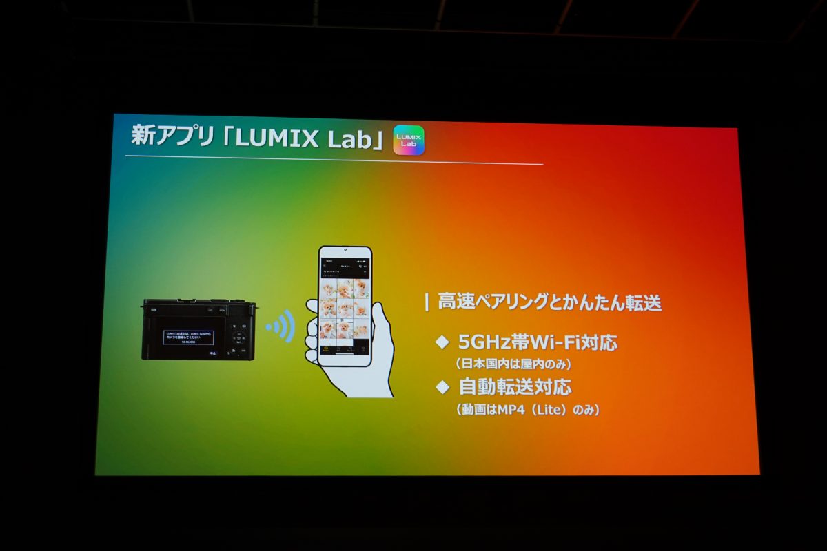 また、DC-S9に合わせて新しいアプリ「LUMIX Lab」もリリースします。従来アプリ「LUMIX Sync」に比べて接続手順が簡単になったり、画像や動画の転送に5GHz帯のWi-Fiをカメラ側で選択できるようになったりしています。