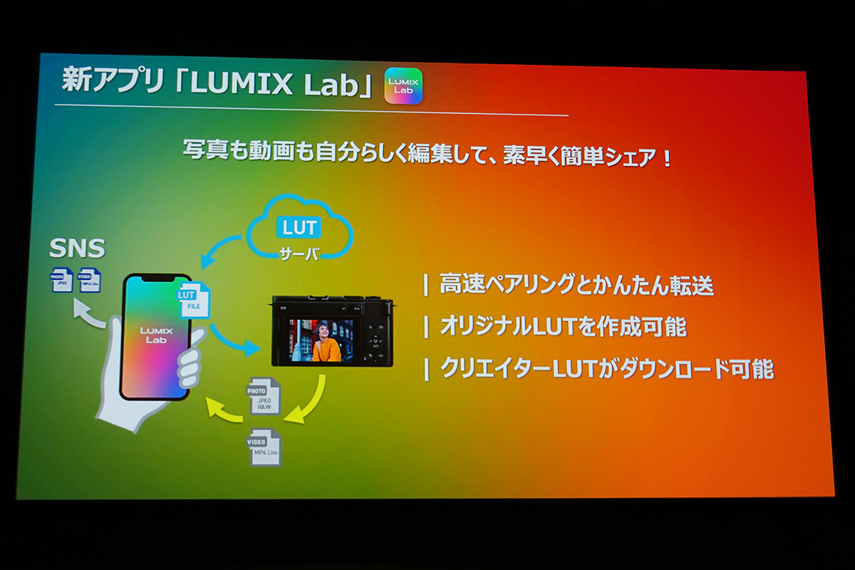 「カメラの新製品だけでなく、新しいレンズ、新しいアプリケーションとの組み合わせによって、撮影から投稿までのワークフロー全体を革新。SNSの投稿に革命を起こすLUMIX渾身の新製品となっています」と自信をのぞかせます。