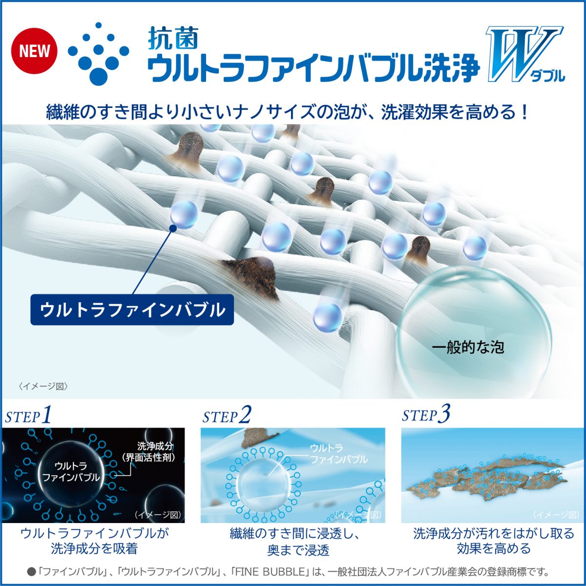 「抗菌ウルトラファインバブル洗浄W」を採用したタテ型洗濯乾燥機
