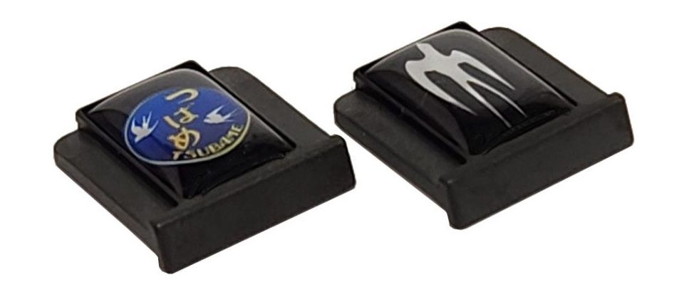 両製品ともユーエヌオリジナルで、JR西日本商品化許諾済とJR東海/JR九州承認済。天面のマーク部分には透明度の高い樹脂をドーム状に盛り、艶やかな光沢と丸みが特徴のポッティング加工を施しています。高級感のある仕上がりになり、スワローエンゼル、特急つばめのマークがより一層際立ちます。そして、カメラを上品に引き立てつつ接点部を保護します。