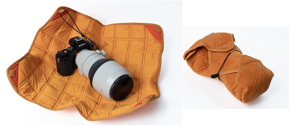 「Flex Multi Wrap-14」は小型カメラ、レンズ、ipad、携帯ゲーム機などに活用できる360×360mmの使いやすいサイズ。ひとまわり大きな「Big Flex Multi Wrap-14」は、レンズ付きボディや中型レンズ、13インチPCまで包める450×450mmになります。