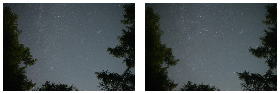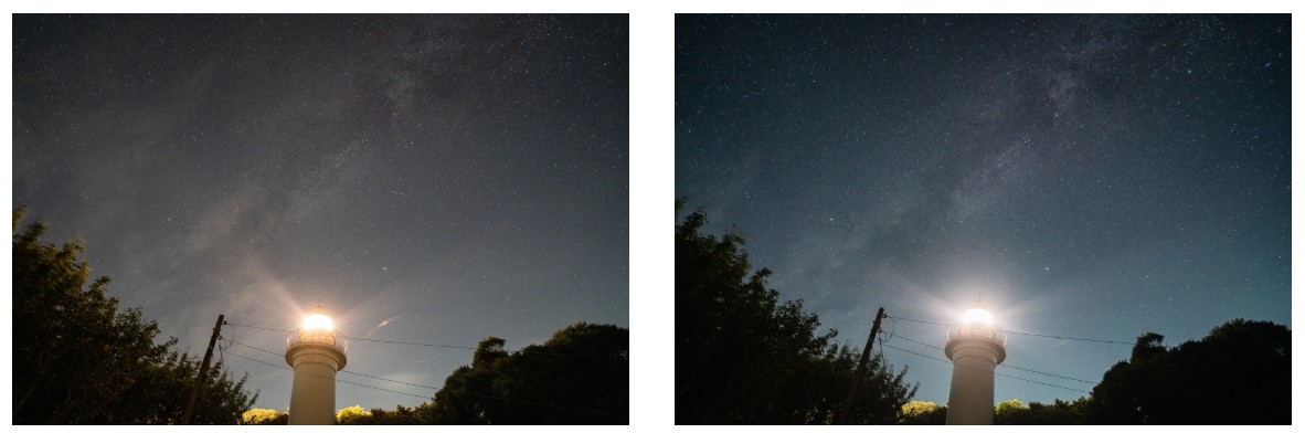 「Anti-Fog スターリーナイト」は、星空撮影で街明かりによる色カブリを抑える光害カットフィルターです。使用することで色カブリを低減し、自然な色再現が可能になります。現像ソフトで作品を仕上げる場合でも、光害カットフィルターであらかじめ光害をカットしておくと、作業工程が減ってRAW現像しやすくなるメリットがあります。