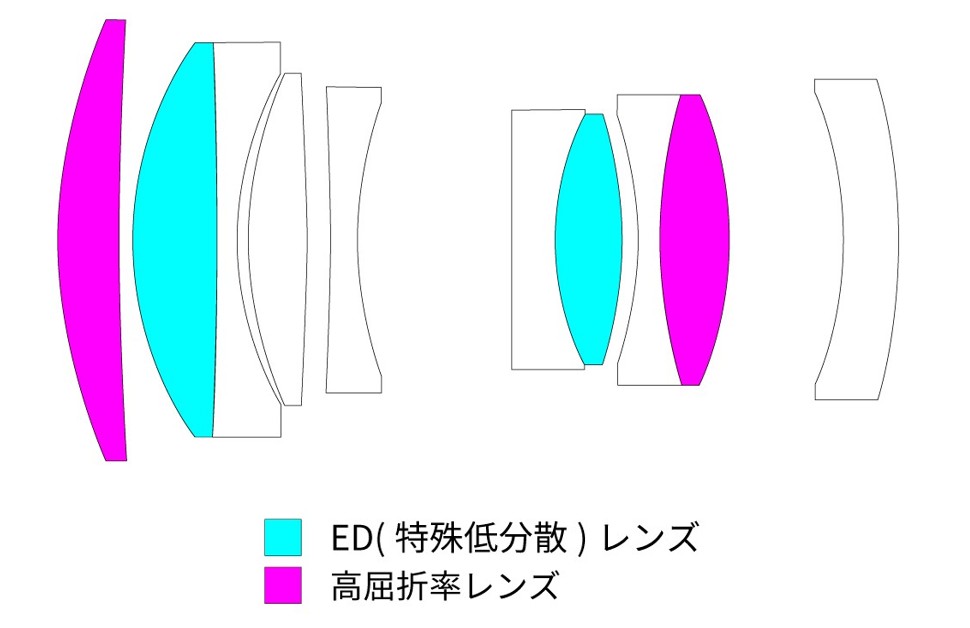 レンズ構成 7群10枚(EDレンズ 2枚、高屈折レンズ2枚を含む)