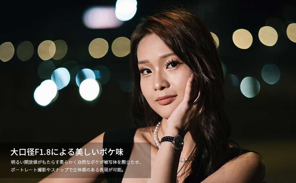 「AstrHori AF 85mm F1.8 II」は、ポートレート撮影に理想的な焦点距離と開放F1.8の明るさを備えたフルサイズミラーレスカメラ用のAFレンズです。STM(ステッピングモーター)による静粛かつ正確なオートフォーカスにより、静止画・動画を問わずに高い追従性を発揮。瞳AFや顔検出にも対応します。また、開放F1.8がもたらす柔らかく自然なボケが被写体を際立たせ、立体感のある表現が可能です。