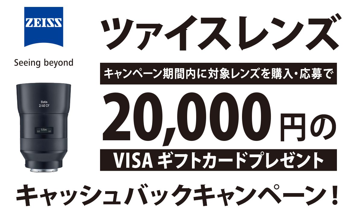 キャンペーン期間中、ZEISS Batis (ツァイス バティス) シリーズの対象レンズを購入し、所定の応募用紙で応募した全員に、20,000円のVISAギフトカードがプレゼントされます。対象製品は以下のとおり。