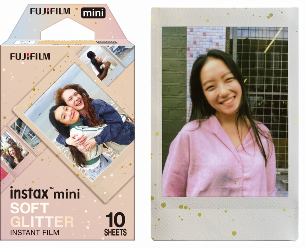 本体カラーに合わせたカメラケースと、ゴールドのアクセントで彩った一枚ずつ異なる柔らかい色合いのミニフォーマットフィルム「SOFT GLITTER」が同時に発売となります。参考価格は、カメラケースが5,500円、「SOFT GLITTER」は10枚入りで1,200円(いずれも税込)。