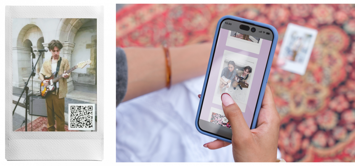 新機能「Layered Photo Mode」では、セルフィーカメラで撮影した自撮り画像を、メインカメラで撮影した風景画像に重ねてプリント可能。自撮りした表情とその場の風景を組み合わせることで、より思い出の詰まったチェキプリントに仕上がります。最大10枚の音付き画像にテーマに合うBGMを付けて、スライドショー形式の動画に仕上げる機能「instax Sound Album」も新たに搭載しています。