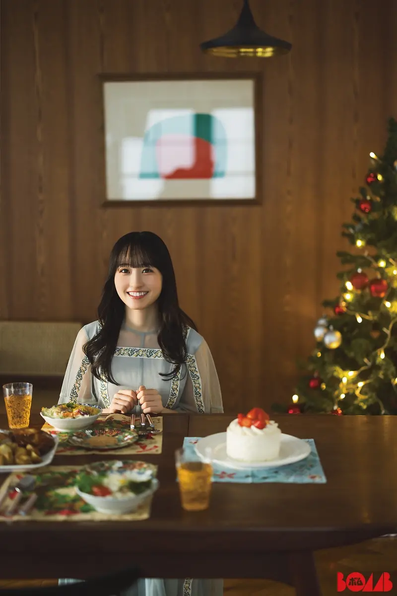 表紙を飾るのは、5期生の“みーきゅん”こと、一ノ瀬美空。グラビアのテーマは、この季節にぴったりなクリスマス。素肌感のある水色のノースリーブニットと白のミニスカートでは、笑顔でクリスマスツリーの飾り付けをしたり、ベッドでゴロゴロ。純白のワンピースでは、幻想的に部屋中を飛びまわる。レース感のある青のワンピースに着替えて、屋上で夕焼けをバックにたそがれてから、待望の食事シーンで大きなチキンとケーキをパクリ。最後はサンタを彷彿とさせる真っ赤なワンピースで、イルミネーションの街に登場している。