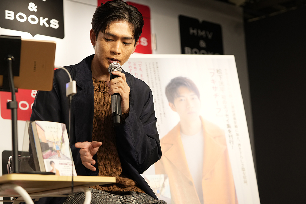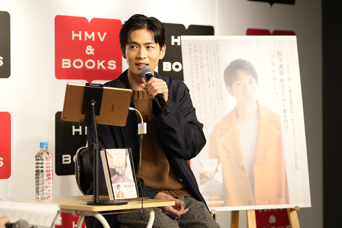 松下洸平の初のエッセイ集『フキサチーフ』が2024年12月13日に刊行。その出版を記念し、12月16日、都内にて約50名の購入者を招いてのトークイベントが開催された。本書は雑誌『ダ・ヴィンチ』にて2021年4月号から2024年1月号に掲載された連載に、新たな書き下ろしを加えた全36篇で構成。下積み時代のエピソードや家族の話、そして自分自身に向き合う姿などを、彼らしい真っ直ぐな言葉で書き綴っている。トークショーはカバーイラストや紙選びなど、随所へのこだわりについても語られた貴重なひとときとなった。