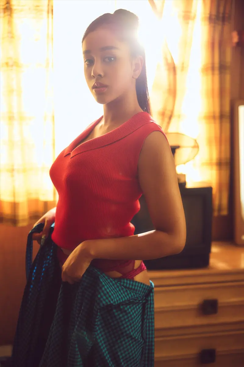 昭和のムードを醸し出すべく、アナログテレビ、昭和タンスが用意された民家で撮影を敢行。到着したカットでは、ハイカラな衣装に身を包みつつも、隠しきれないダイナマイトボディが確認できる。一枚ずつ丁寧に脱衣していくと、圧倒的なインパクトで目がくぎ付けになる豊満バストと、ぷりっとした女性らしい美尻がお目見え。昭和時代にタイムスリップしたハーフ美女の妖艶な姿は必見だ。