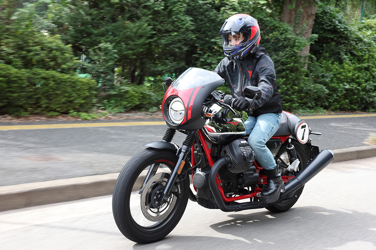 平嶋 まだ知識がなさすぎて、どのバイクに乗りたいというのはなかったんです。とりあえず体格的にリッターバイクは規格外だなと思っていたので、400ccから900ccぐらいまでのミドルクラスを探しました。自分で扱いきれるバイクがいいなと。そんな中、仕事で乗ったバイクに「これいいな」と思ったんです。それが、モト・グッツィV7Ⅲレーサーでした。