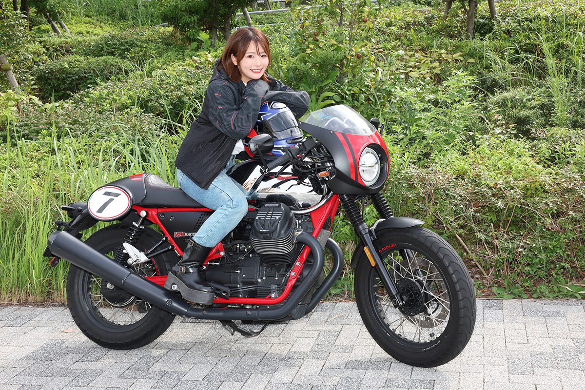 平嶋 そのときは、女の子複数人で一緒にツーリングする企画の撮影だったんですけど、女の子たちと3台のモト・グッツィを乗り換えながら走りました。同じモト・グッツィV7Ⅲのストーン、スペシャル、それからレーサーっていう3つのモデルだったんですけど、その女の子たちと「レーサーが一番いいよね」という同じ感想に至ったんです。V7Ⅲレーサーはセパハンで、見た目が個性的なのにすごく乗りやすいっていう、そのギャップが自分の中でピンと来ました。