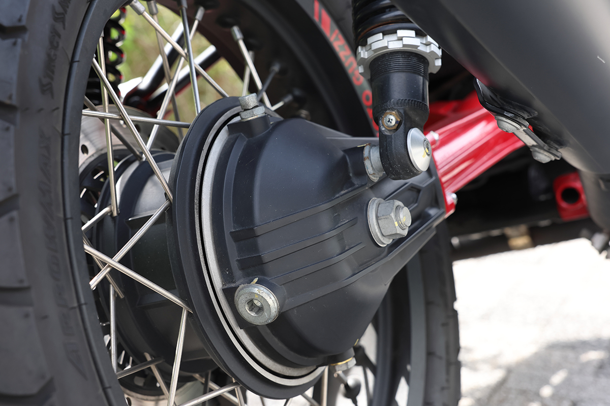 平嶋 父に教えてもらいながら、中空になっている軽量のものに交換しました。サスペンション関係でいうとリアサスも赤にしようかなと悩んでいたこともあります。バイクメディアの人とか仕事先の人に相談したら「うるさくなるから、赤いパーツはこれ以上はいらないんじゃないか」と教えてもらってやめました。