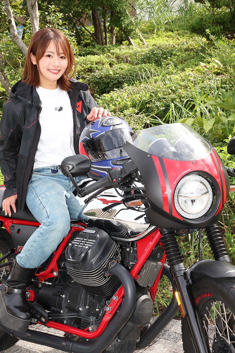 平嶋 そのときは、女の子複数人で一緒にツーリングする企画の撮影だったんですけど、女の子たちと3台のモト・グッツィを乗り換えながら走りました。同じモト・グッツィV7Ⅲのストーン、スペシャル、それからレーサーっていう3つのモデルだったんですけど、その女の子たちと「レーサーが一番いいよね」という同じ感想に至ったんです。V7Ⅲレーサーはセパハンで、見た目が個性的なのにすごく乗りやすいっていう、そのギャップが自分の中でピンと来ました。