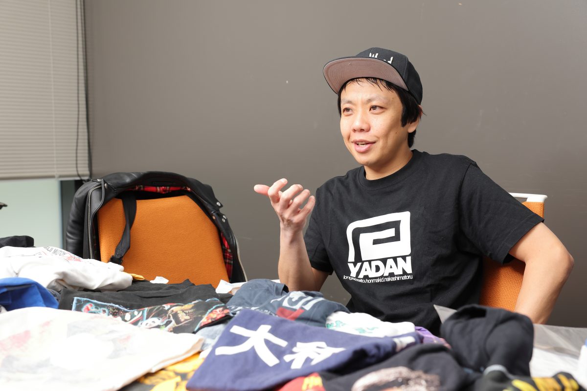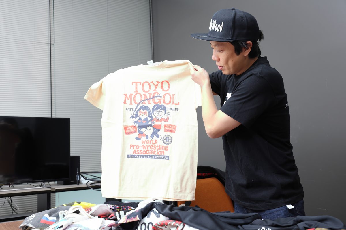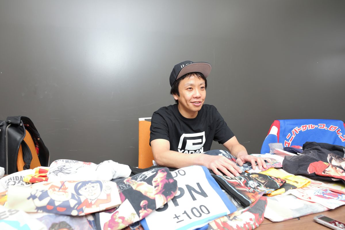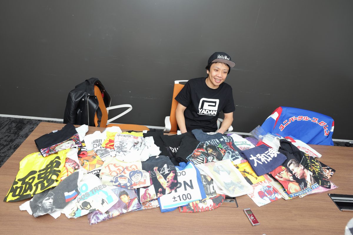 必殺技はダイビング・ヘッドをいうほどプロレスファンであり、自身も格闘技で大会にも出場しているという、お笑いトリオ「や団」の本間キッドさん。じつは中学生のころからTシャツ収集を始め、現在は7~800枚もあるといいます。きっかけはプロレスでした。Tシャツコレクションについてたっぷりお話を伺いました。