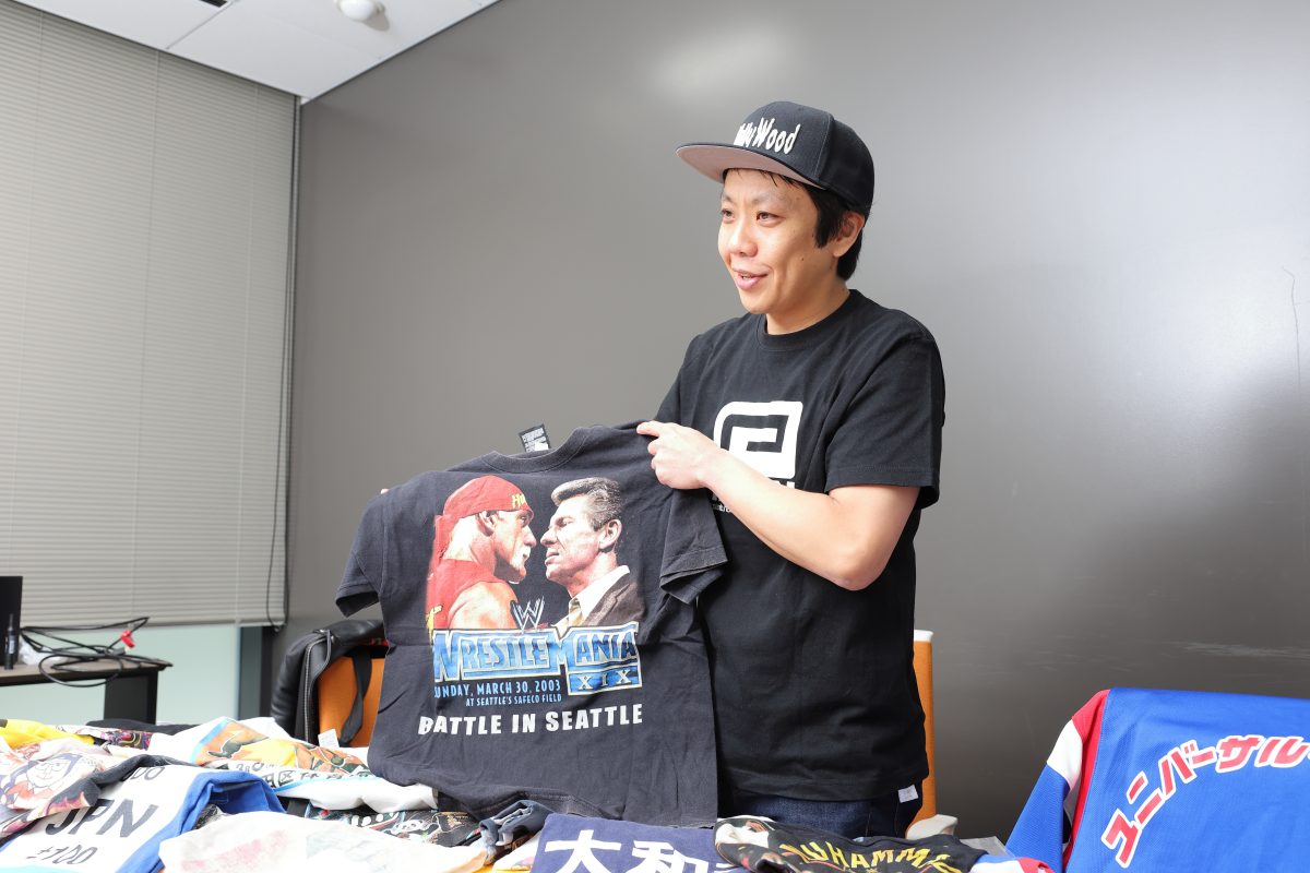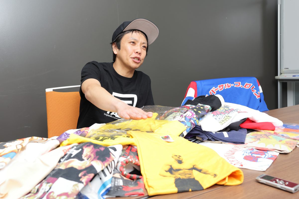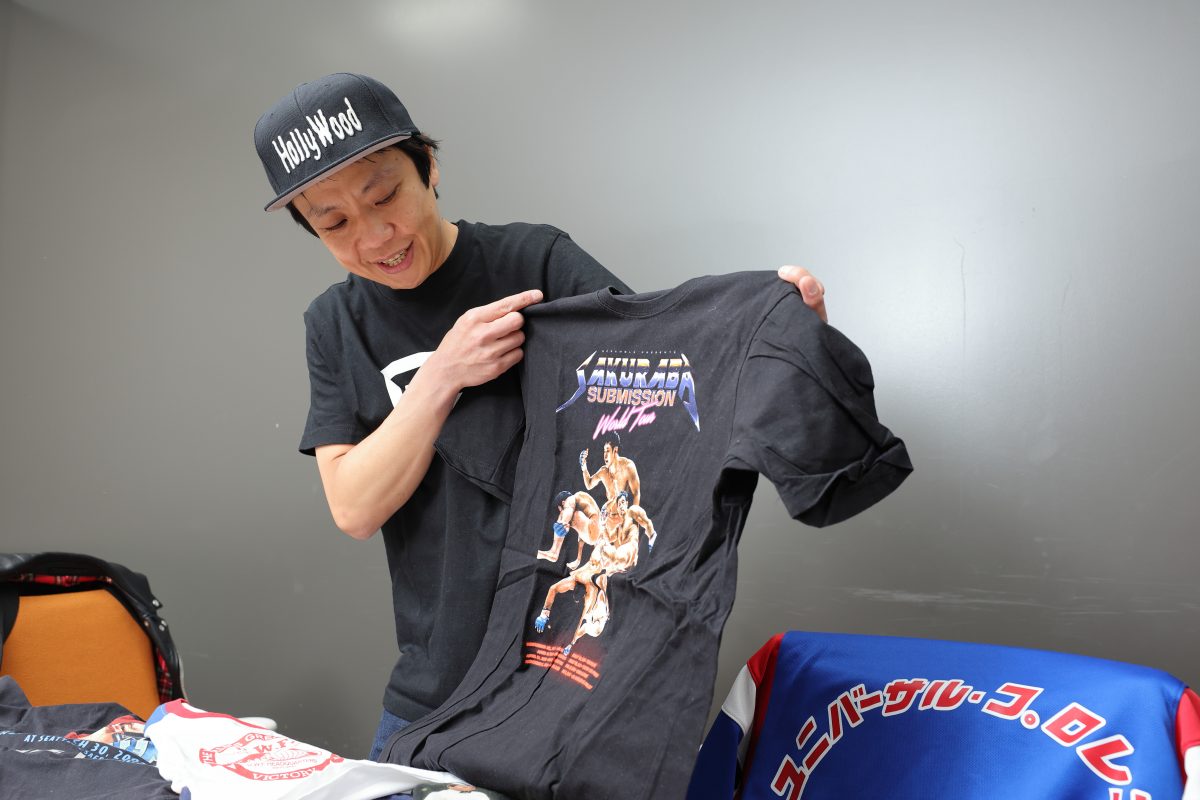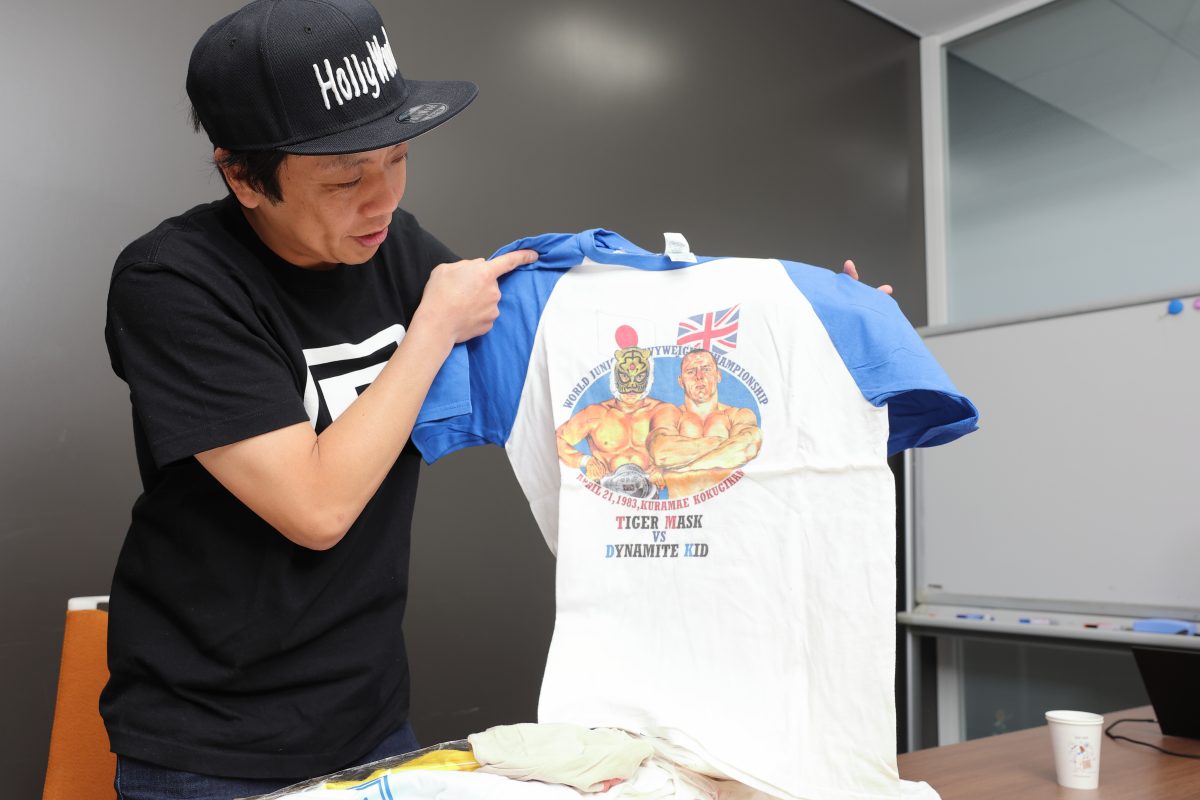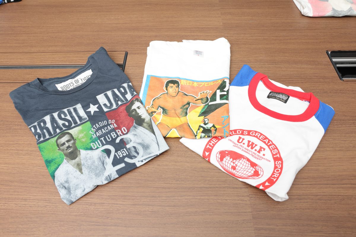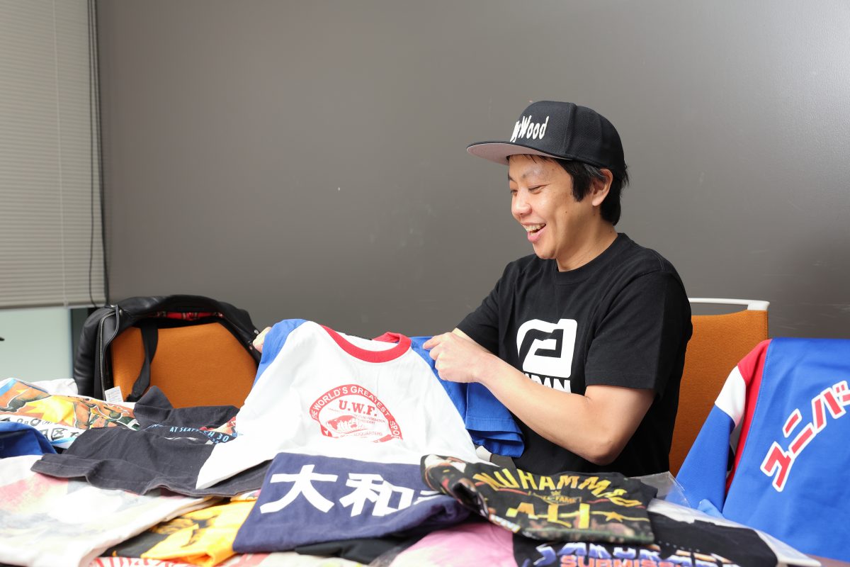 本間 Tシャツは本棚に詰めてるんですけど、部屋が本当にヤバくなってますね(笑)。たまに買うのを控えようかなと思うんですけど、たとえばUWF(※ユニバーサル・レスリング・フェデレーション。1984年4月~1985年9月に活動した第1次と、1988年4月~1991年1月に活動した第2次にわかれる)の40周年記念イベントでメッチャかっこいいTシャツが売っているのを発見して、また何枚も増えちゃったりとか。