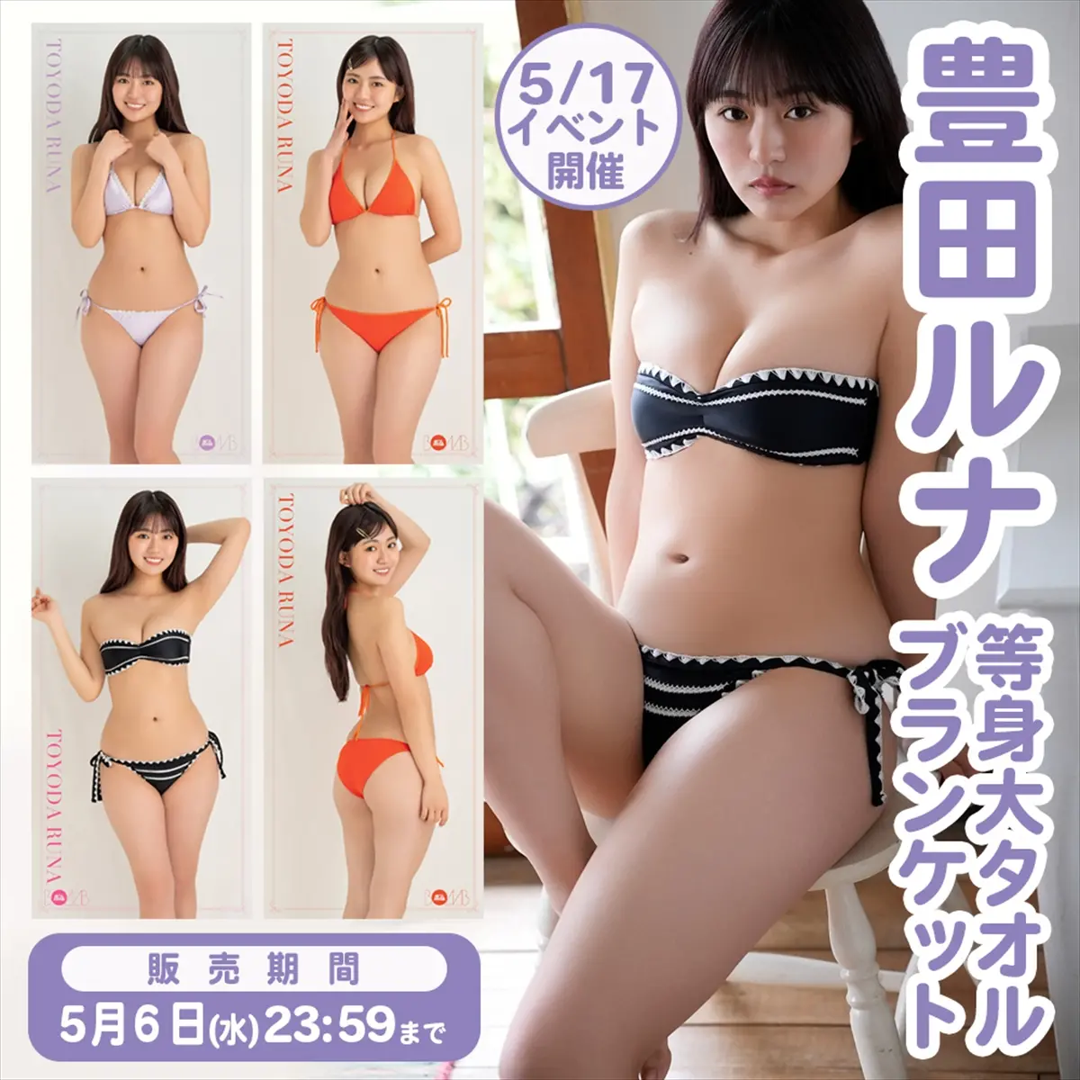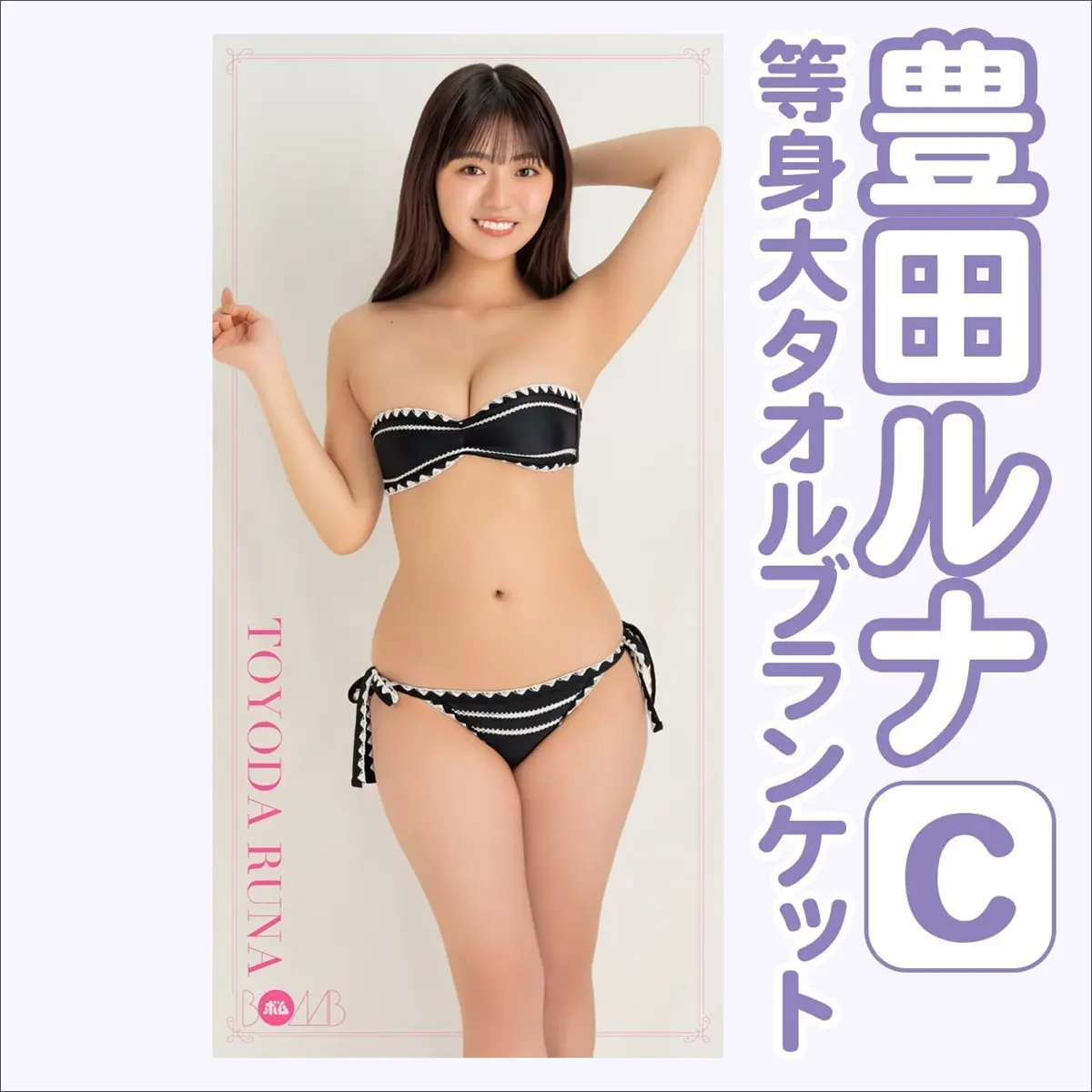 豊田ルナの水着姿がプリントされた等身大タオルブランケットの発売が決定。「ボムアイドル工房Z」(https://bombidol.official.ec/)で予約受付がスタートした。