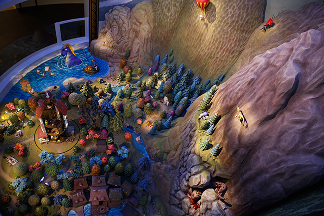 続く1階は、家族そろって食事をしたり、客人をもてなす場として物語にもよく登場するダイニングキッチンです。素朴で愛らしい調度品はもちろん、ちょっとした驚きの仕掛けもあったりと、見どころはいっぱい!